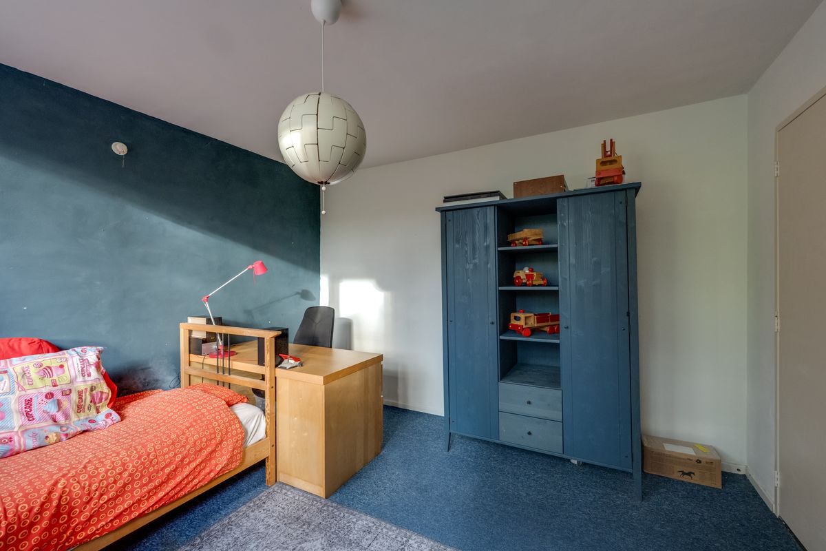 Deze slaapkamer (4,07 m. x 3,67 m) ligt aan de achterzijde van de woning. Er ligt vloerbedekking. Het kunststof kozijn is v.v. HR++ glas en een hor.