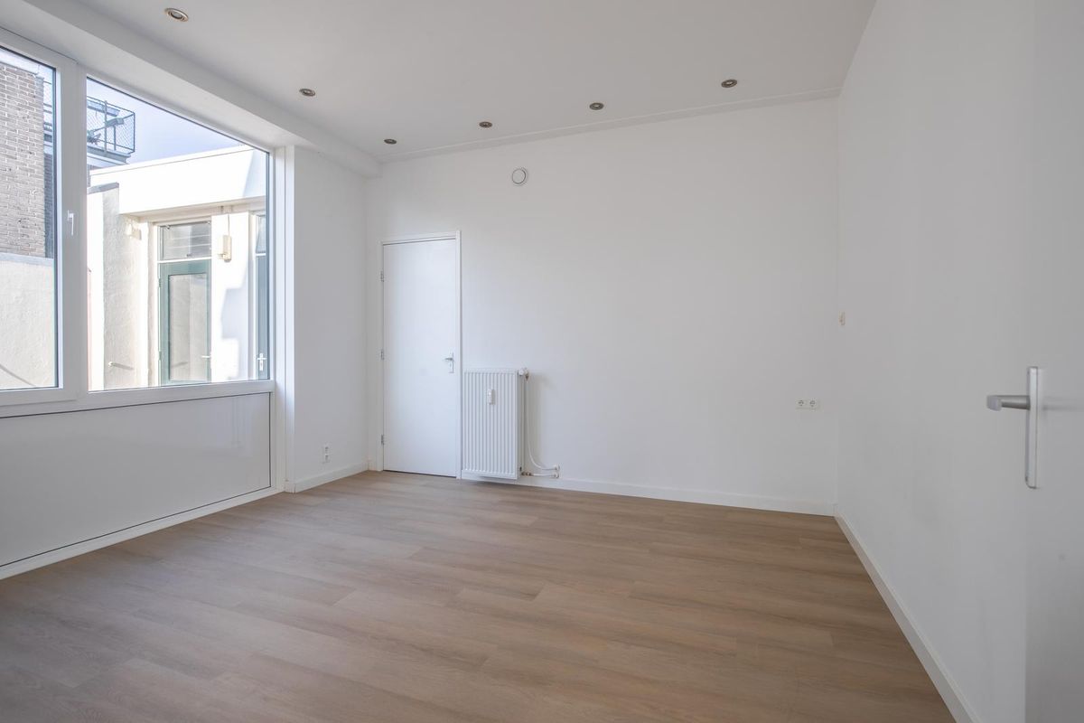 De woonkamer met open keuken is voorzien van een aangename lichtinval door de hoge ramen aan de voorzijde en het zijraam. In de woonkamer is ruimte voor een comfortabele zithoek.