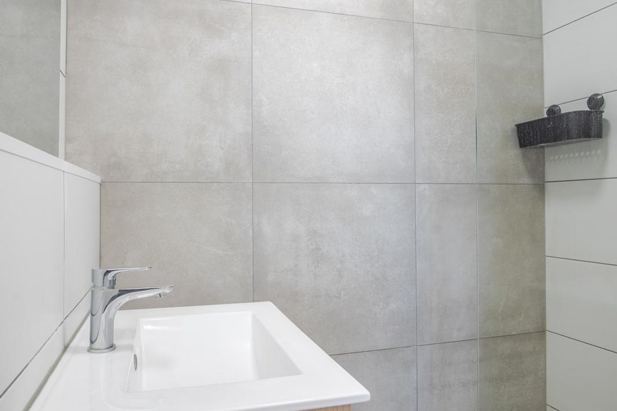 -Volledig betegelde badkamer met inloopdouche en wastafelmeubel