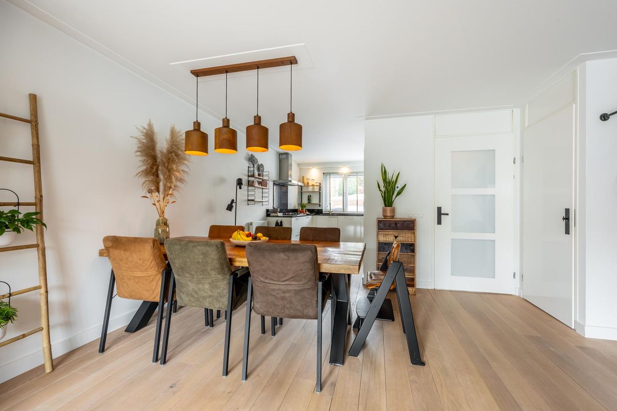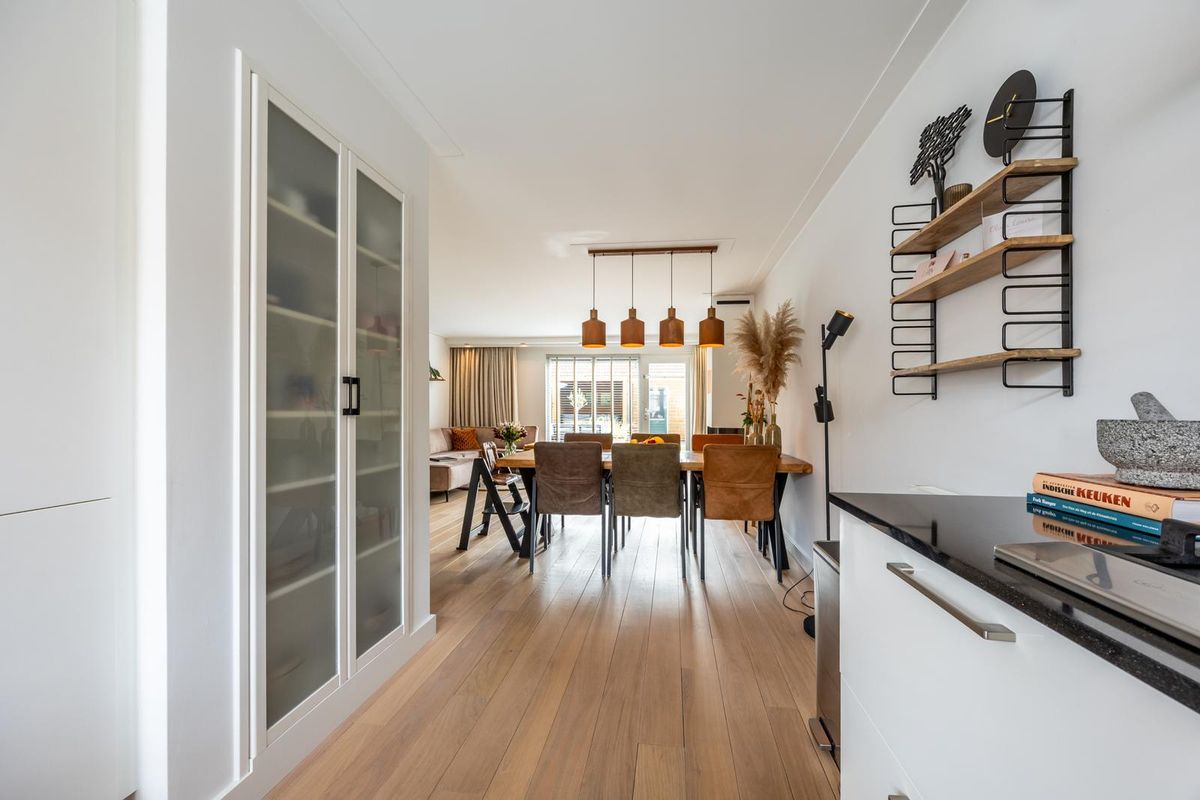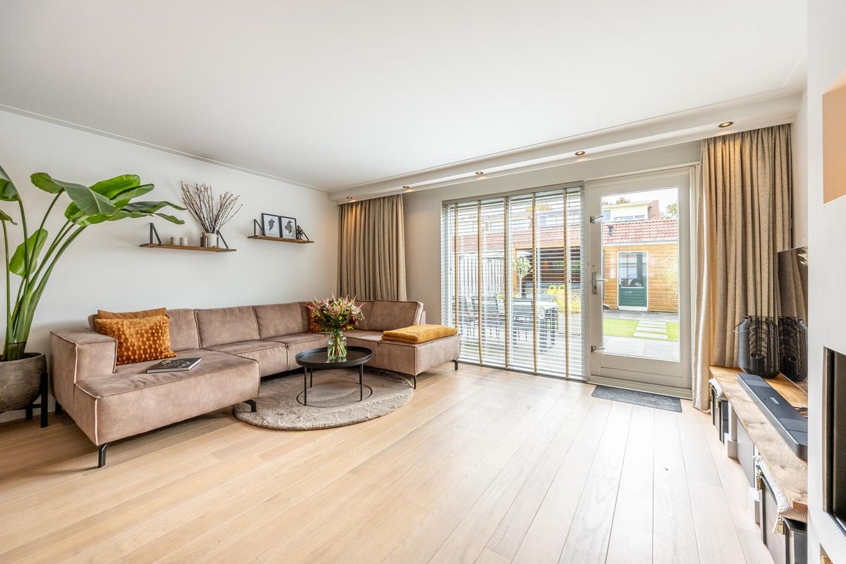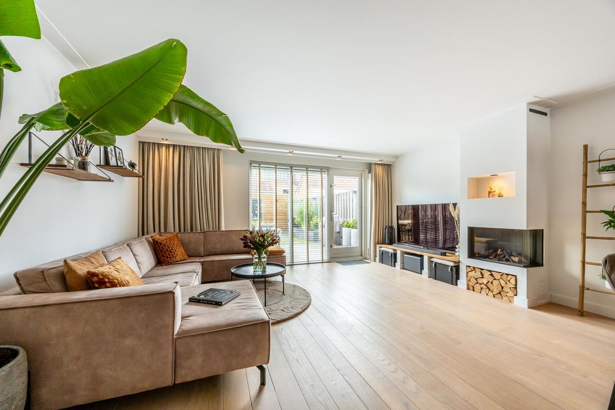 Je komt binnen in de hal met meterkast, toiletruimte en trapopgang naar de eerste verdieping. Vanuit de hal stap je de woonkamer binnen. De woonkamer is ruim opgezet, heeft een gashaard en grote ramen aan de achterzijde waardoor veel licht binnenvalt. Op de vloer ligt eikenhout. de wanden zijn gestuct en een mooie stucplint op het plafond zorgt voor een strakke afwerking. Vanuit de uitgebouwde woonkamer is er toegang tot de achtertuin.