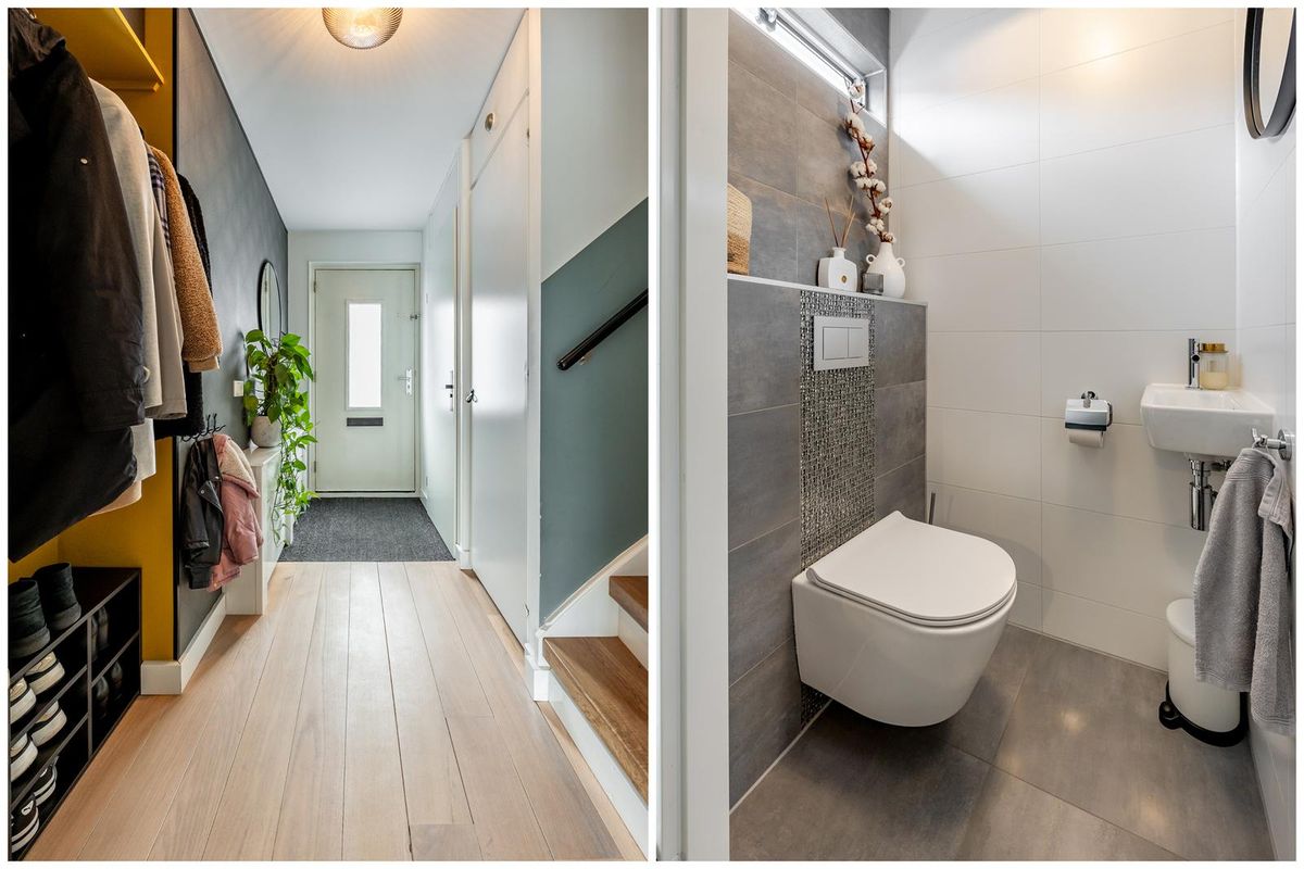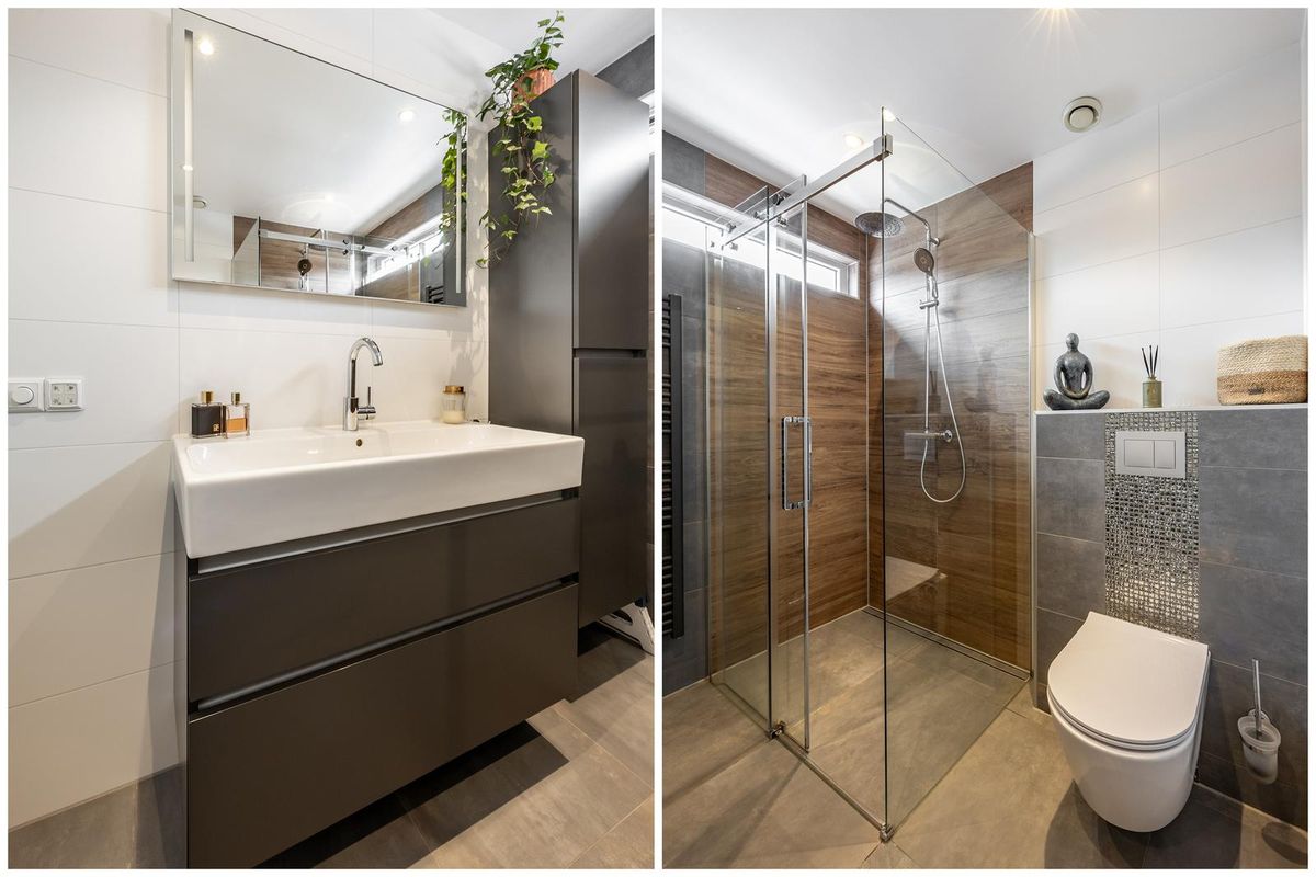 Ook de eerste verdieping is, net als de rest van de woning, keurig afgewerkt en praktisch ingedeeld. Via de overloop zijn drie slaapkamers en de badkamer bereikbaar. De kamers zijn voorzien van een laminaatvloer en gestucte wanden in rustige kleuren. De moderne badkamer is compleet uitgevoerd met een inloopdouche, designradiator en een tweede toilet.