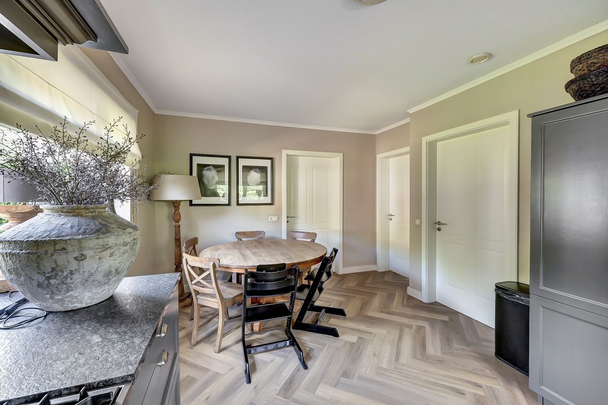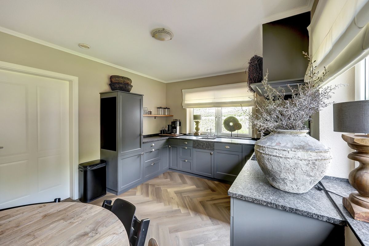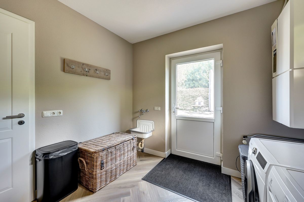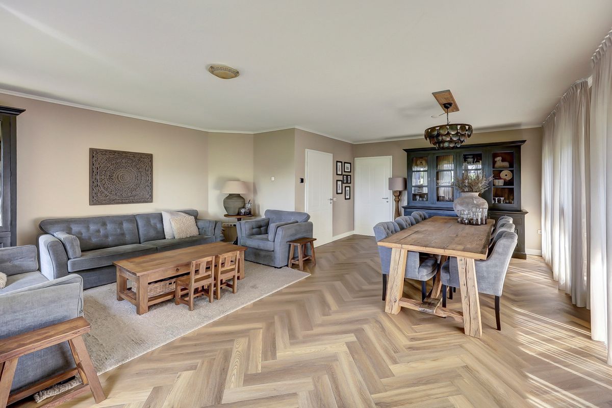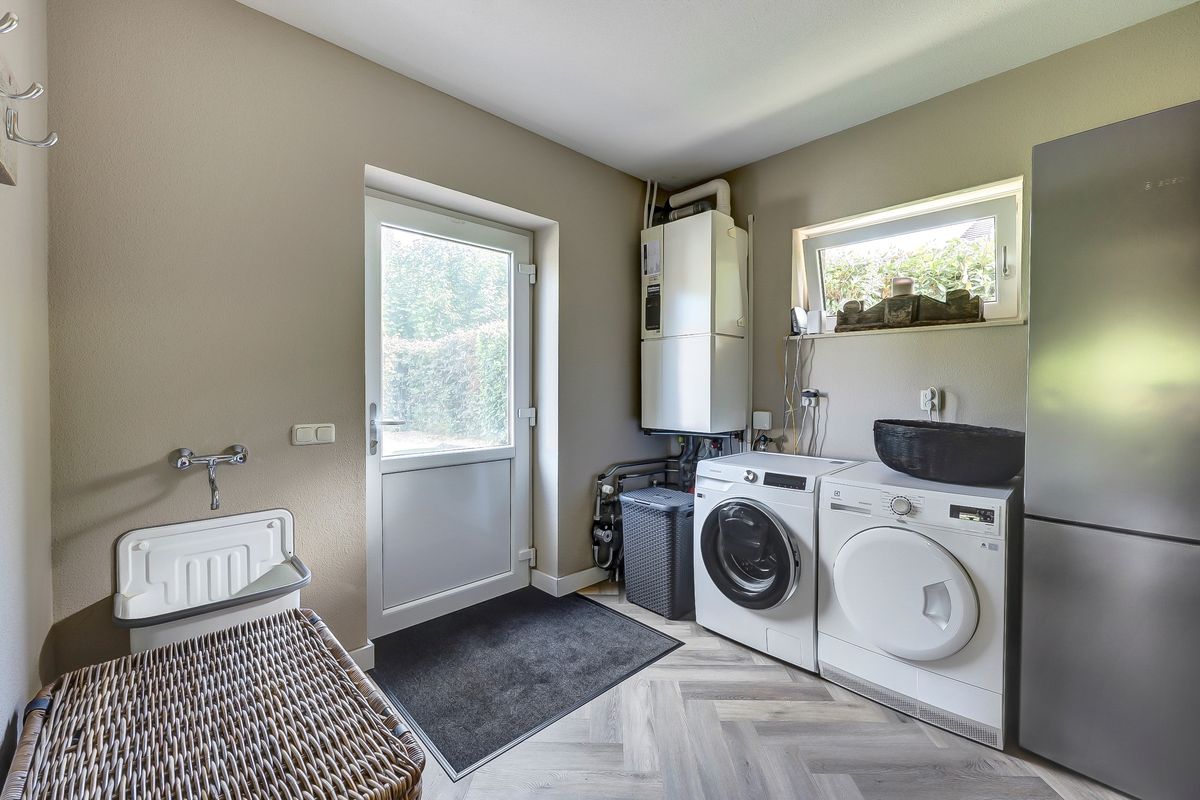 Zeer ruime en speelse entree met toegang tot de meterkast en toilet. Woonkamer aan de voorzijde van de woning. De begane grond heeft een frisse, moderne uitstraling dankzij het recente stucwerk en de strakke PVC vloer. De ruime woonkamer biedt veel lichtinval en een mooi uitzicht aan de voorzijde. De combinatie van kleuren en materialen doen erg warm en sfeervol aan. De keuken aan de achterzijde is voorzien van een natuurstenen aanrechtblad en alle inbouwapparatuur. Het boretti kooktoestel is een aanwinst voor elke (hobby)kok! Bijkeuken met een praktische inbouwkast, witgoedaansluiting en de Cv-ketel. De aangebouwde stenen garage maakt het geheel compleet en biedt volop praktische mogelijkheden.