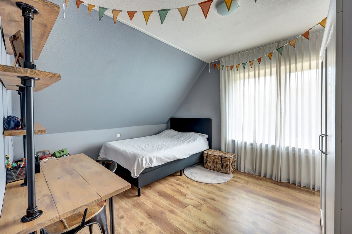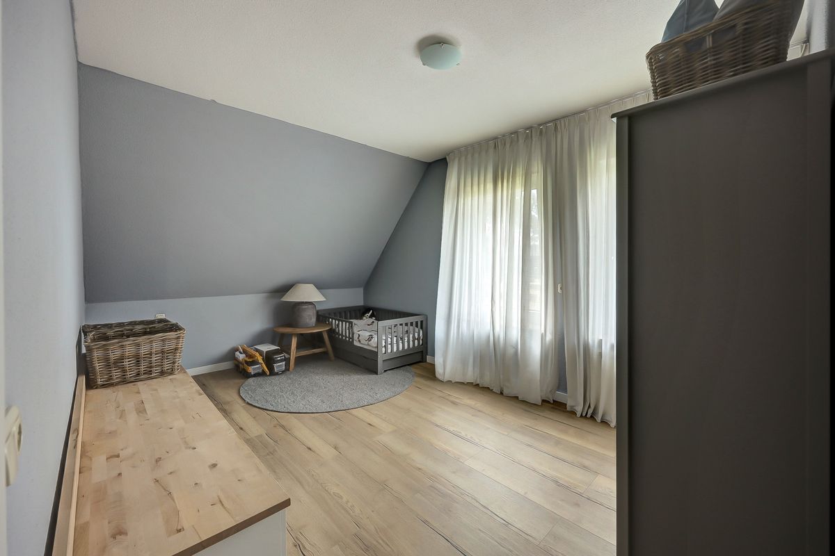 Overloop met prachtig daglicht middels het dakraam. Boven vindt u vier comfortabele slaapkamers, ideaal voor een gezin of voor wie graag ruimte wil voor een thuiswerkplek of hobbykamer. Ruime badkamer voorzien van dubbele wastafel, toilet, douche en ligbad.
