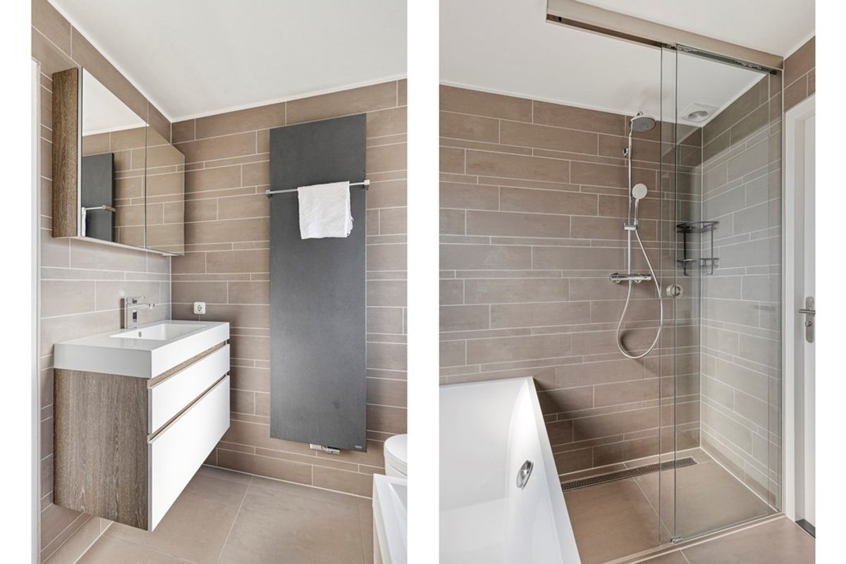 Op de verdieping vind je twee ruime slaapkamers en een moderne, luxe badkamer die voelt als je eigen privésuite. Comfort en rust staan hier centraal.