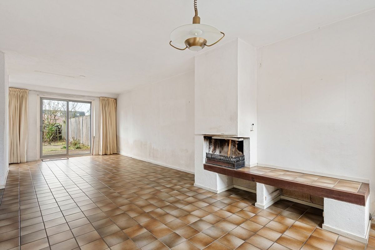 Aan het einde van de gang kom je uit in de ruime woonkamer. Meteen aan de linkerkant zit een trappenkast: superhandig voor voorraad, spelletjes, stofzuiger of andere spullen die je uit het zicht wilt houden. In de woonkamer is genoeg plek voor een zithoek én een eettafel. Via de schuifpui in de woonkamer loop je zó de achtertuin in.