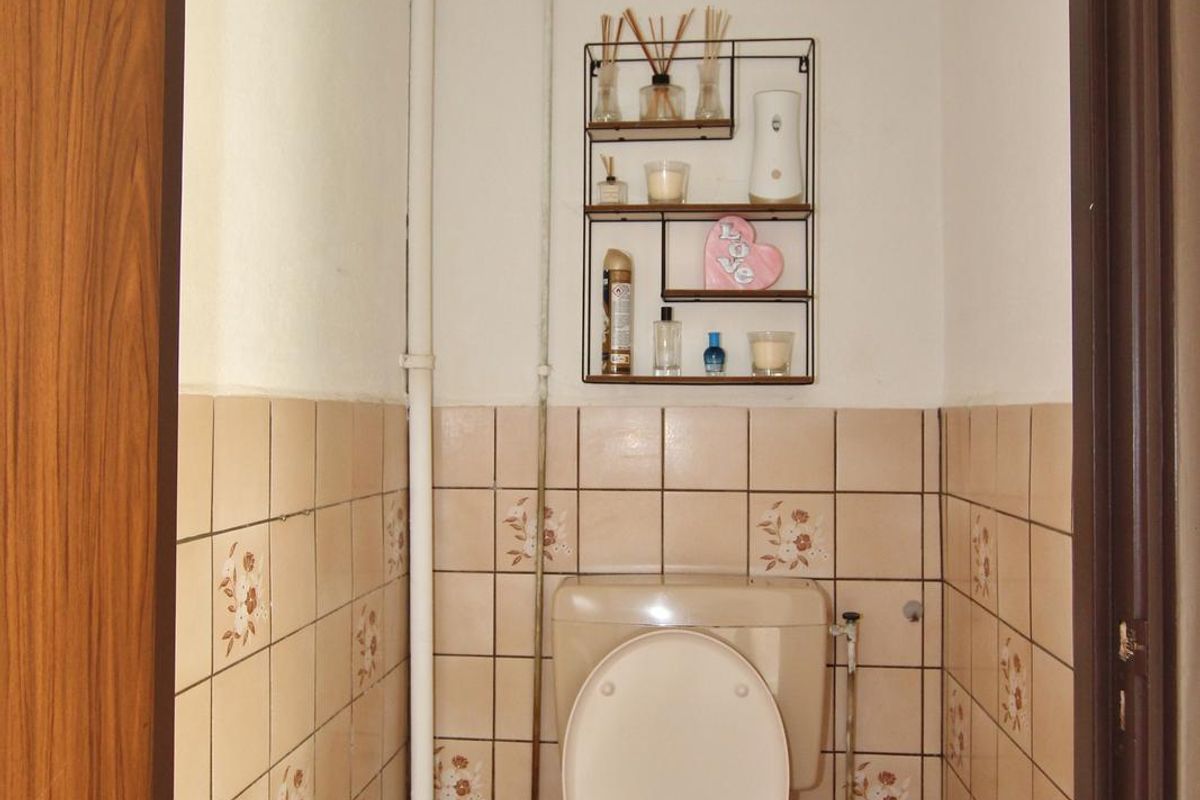 De badkamer (ca. 3,00 x 1,50 m) is uitgerust met een douchecabine, wastafelmeubel met spiegelkast en sanibroyeur.
