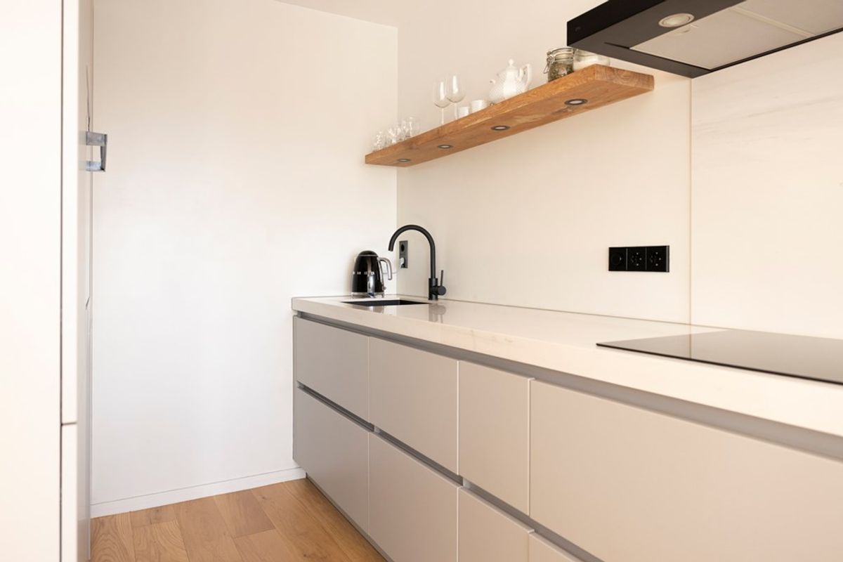 The apartment has been thoroughly renovated and now even has energy label A because, for example, all walls and ceilings have been additionally insulated! Not only energy-efficient, but also excellent sound insulation from neighbours and outside noise. It is located on the third floor, accessible by lift or stairs. The beautiful modern kitchen with extra-large fridge and freezer, induction hob and dishwasher has a practical layout and is a lovely place to prepare your meals. The entire apartment has a real oak floor. The bathroom is very neat and has comfortable underfloor heating. There are two good-sized bedrooms. The balcony faces south and offers a beautiful view over the old city centre. A parking permit for Haarlem city centre is available immediately and the owners’ association (VvE) also rents out parking spaces on the secured rear courtyard.