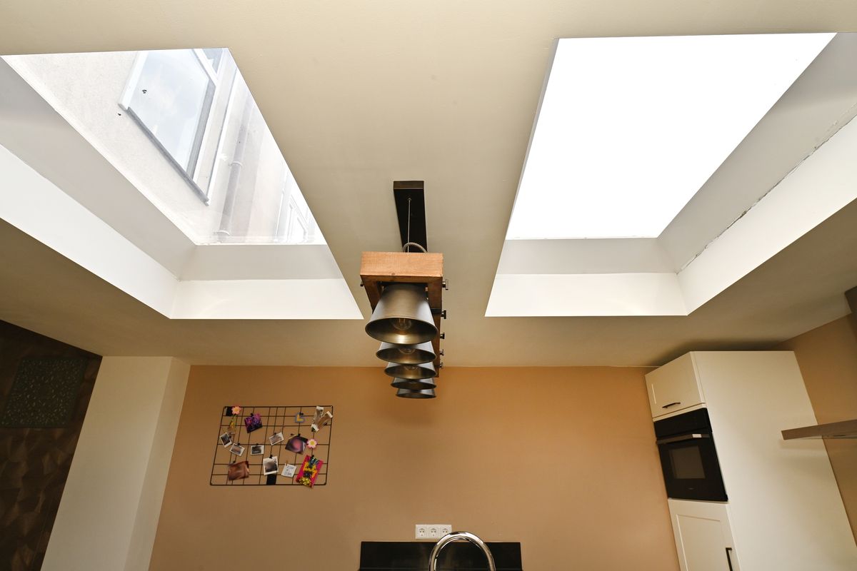 De keuken is volledig vernieuwd in 2018 en uitgerust met een gasfornuis, combi-oven, inbouwkoelkast, vaatwasser en afzuigkap. Twee lichtkoepels zorgen voor extra daglicht. Vanuit de keuken is er toegang tot de hal en de achterdeur.