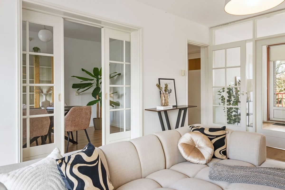 • Geen vragenlijsten / lijst van zakenA spacious apartment on the topfloor of approximately 73 m² featuring two bedrooms, two balconies and abundant natural light. Rubenslaan 81-3 is located on the fourth floor, offering a high level of privacy and open views. With a generous living room, authentic sliding doors leading to the dining room and balconies on both the east and west sides, this is a home where comfort and character come together.
