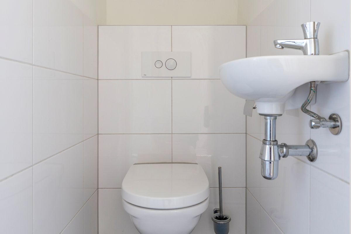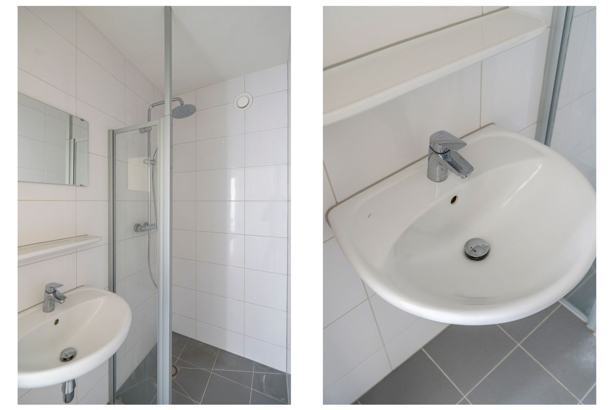 De badkamer is gelegen in het midden van de woning. Deze is modern en voorzien van een inloopdouche en wastafel. In de hal vind je tevens een separaat toilet met fontein.