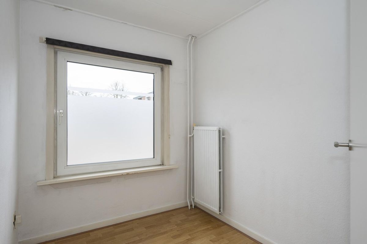 Hal. Spreekkamer (5,35 x 3,36 m), voorzien van een laminaatvloer. Wachtruimte (2,72 x 2,50 m) met pantry, voorzien van een eenvoudig keukenblok, en toiletruimte. Werkkamer (5,32 x 3,82 m) met meterkast en opstelling van de cv-ketel (Nefit, eigendom). Werkkamer (5,62 x 3,82 m) met kunststof tuindeur.