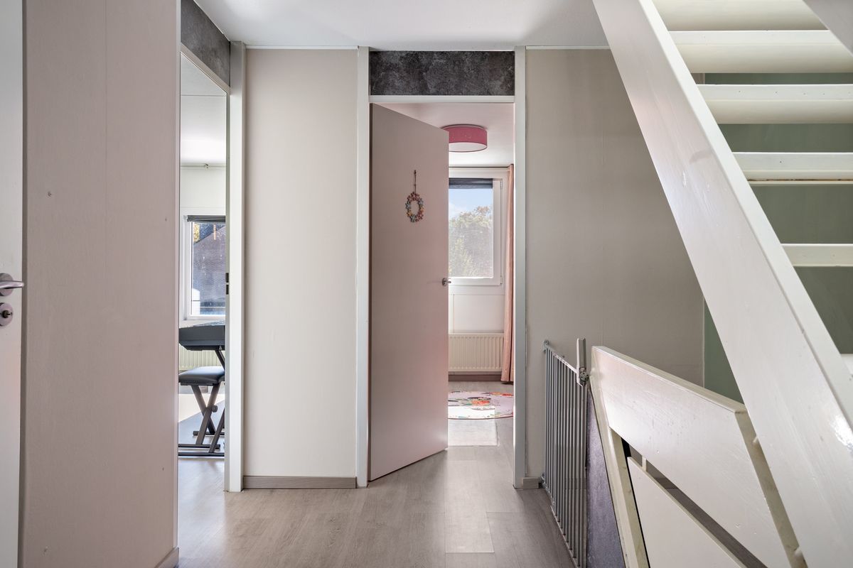 Bereikbaar via een vaste trap. Overloop met wasmachineaansluiting en cv-ketel, slaapkamer.