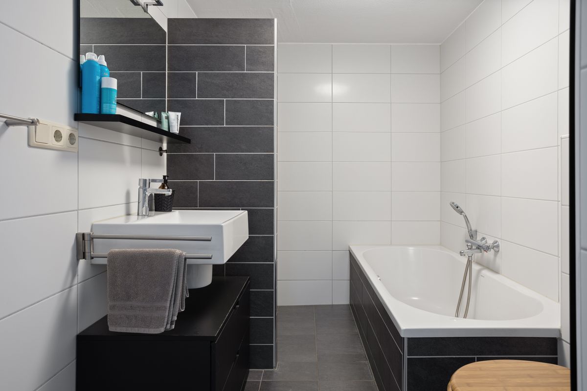 - Badkamer voorzien van inloopdouche, ligbad, toilet, badmeubel en designradiator.
