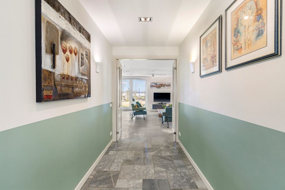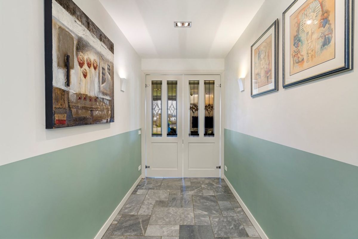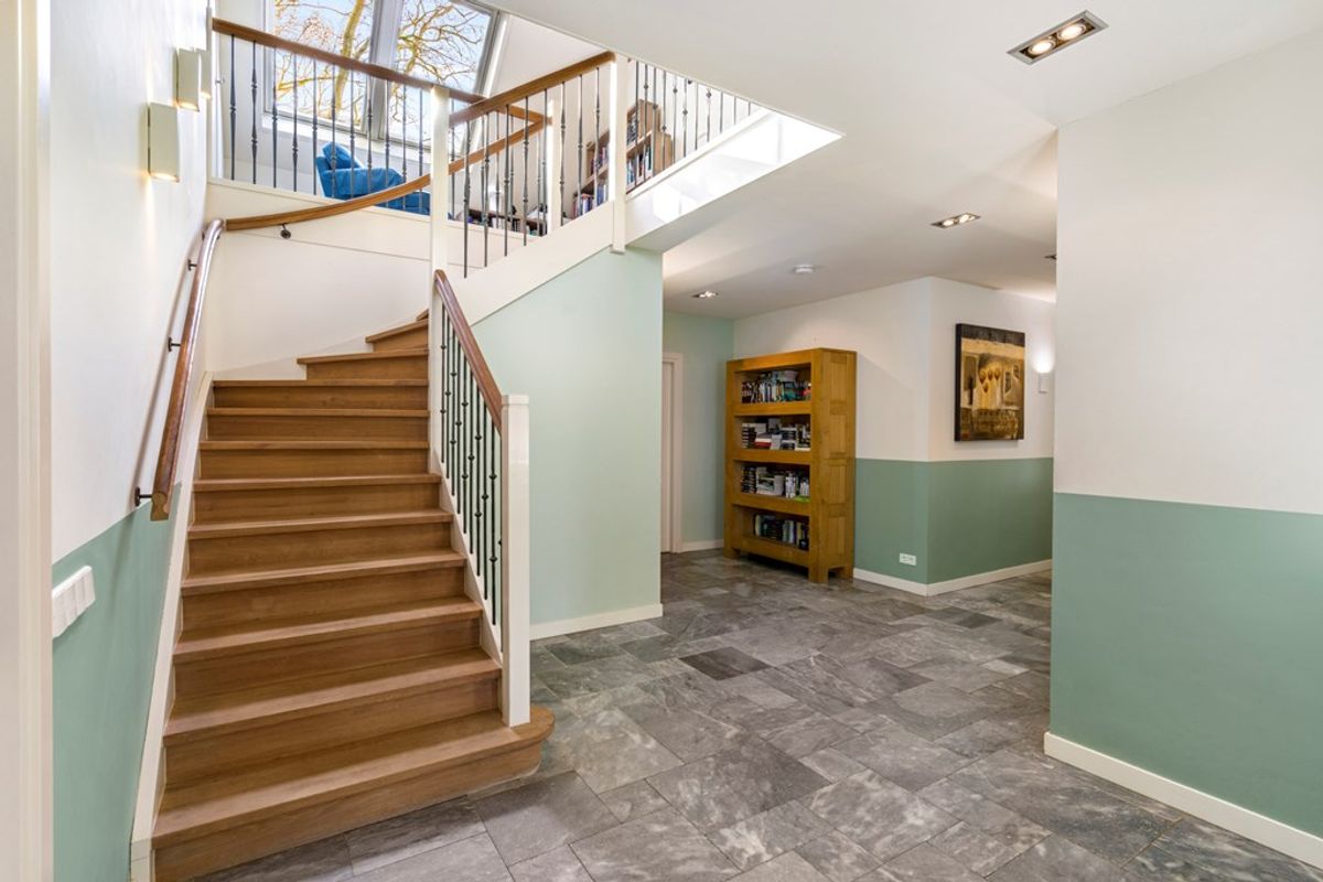 De royale entreehal met open trapopgang en veel lichtinval vormt een stijlvolle binnenkomst. De woning straalt direct warmte, ruimte en kwaliteit uit.
