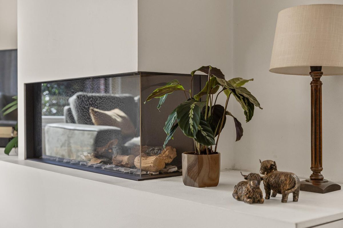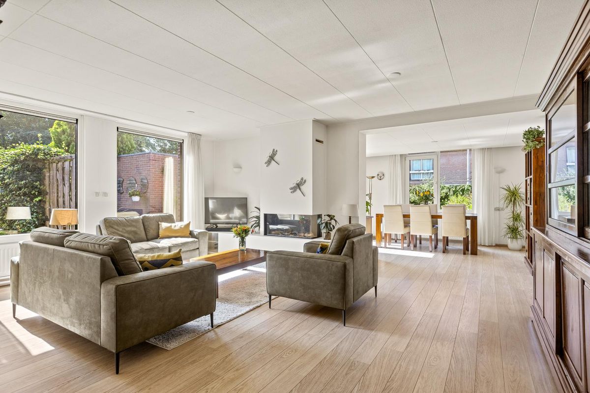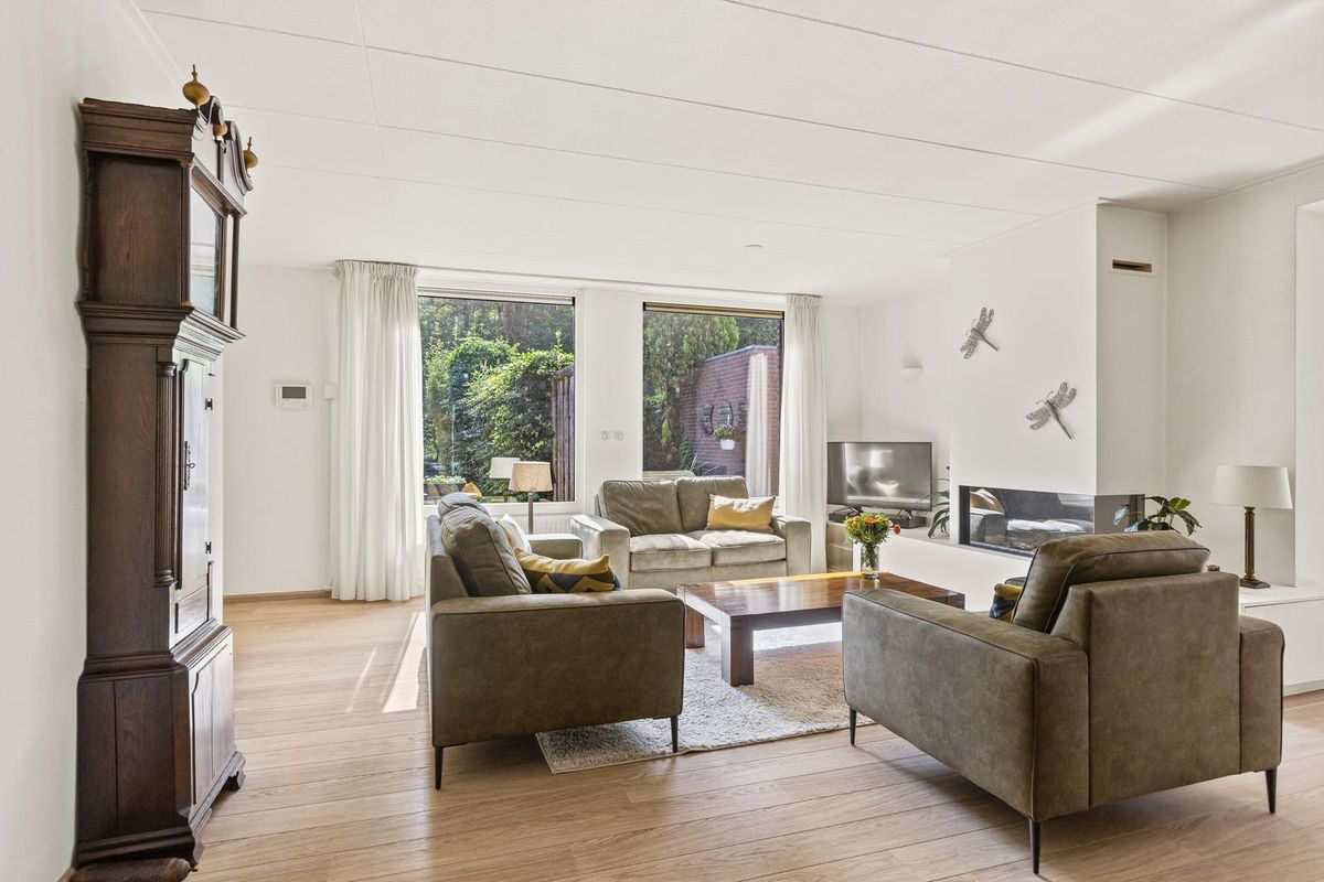 Stap binnen via de hal en je loopt zo de lichte woonkamer in. Dit is een heerlijke plek om samen te komen met vrienden en familie. De gashaard en tv-hoek zorgen voor een knusse setting en de grote ramen brengen volop daglicht naar binnen. Hier plof je lekker neer met een goed boek of geniet je van een gezellige filmavond. Achterin de woonkamer is de eethoek waar je samen kunt genieten van lange diners. Zie je het al voor je, uitgebreid koken en daarna natafelen met vrienden?