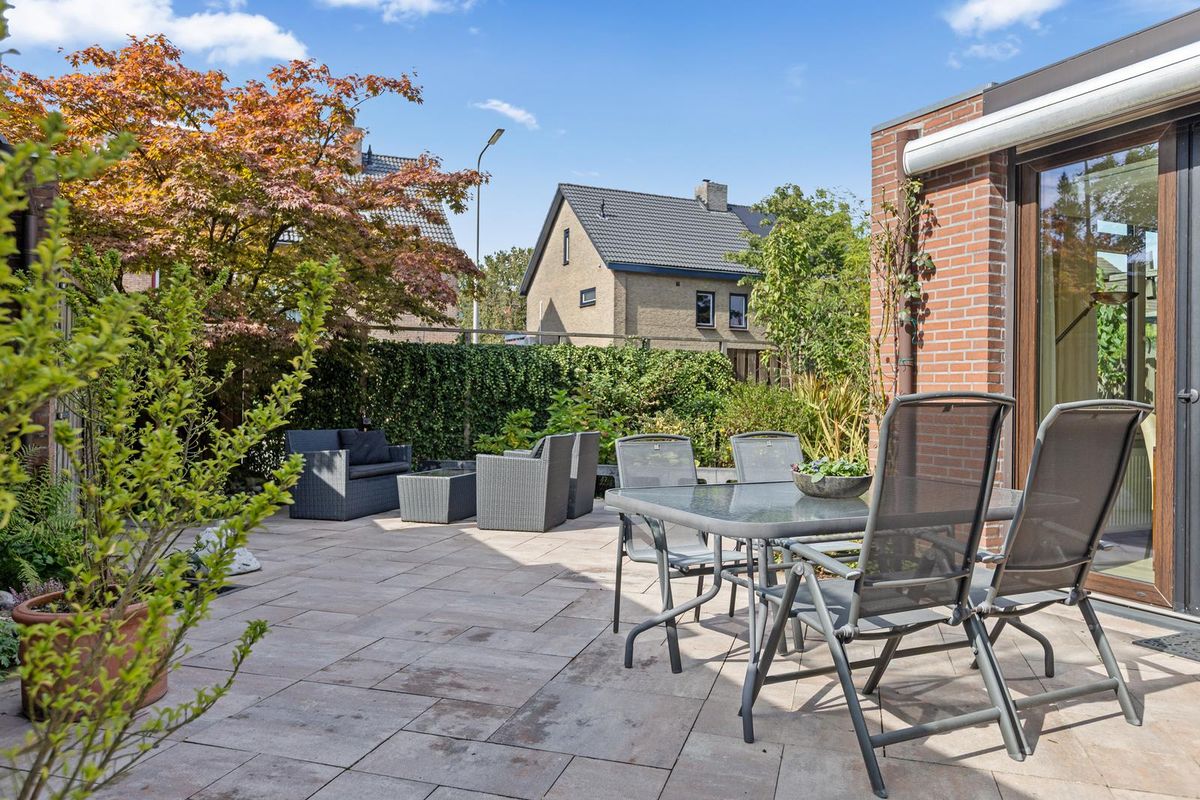 Uniek aan dit huis zijn de twee verschillende tuinen. Vanuit de keuken bereik je een gezellige binnentuin, ideaal voor een kop koffie in de ochtendzon. Zie je jezelf hier al ontbijten met een croissantje en krant erbij? Via een poort heb je daarnaast toegang tot een gezamenlijke buurttuin. Aan de andere kant, via de woonkamer met schuifpui, stap je de tweede tuin in. Deze is gelegen aan de voorzijde, maar door de bomen en de schutting geniet je hier van veel privacy. Je hebt hier meerdere zitjes: perfect om in de zon te relaxen met een goed boek of juist onder het zonnescherm te loungen op warme dagen. Achterin de tuin staat de ruime vrijstaande garage die genoeg plek biedt voor fietsen en tuingereedschap. Voor de garage is bovendien je eigen parkeerplaats.