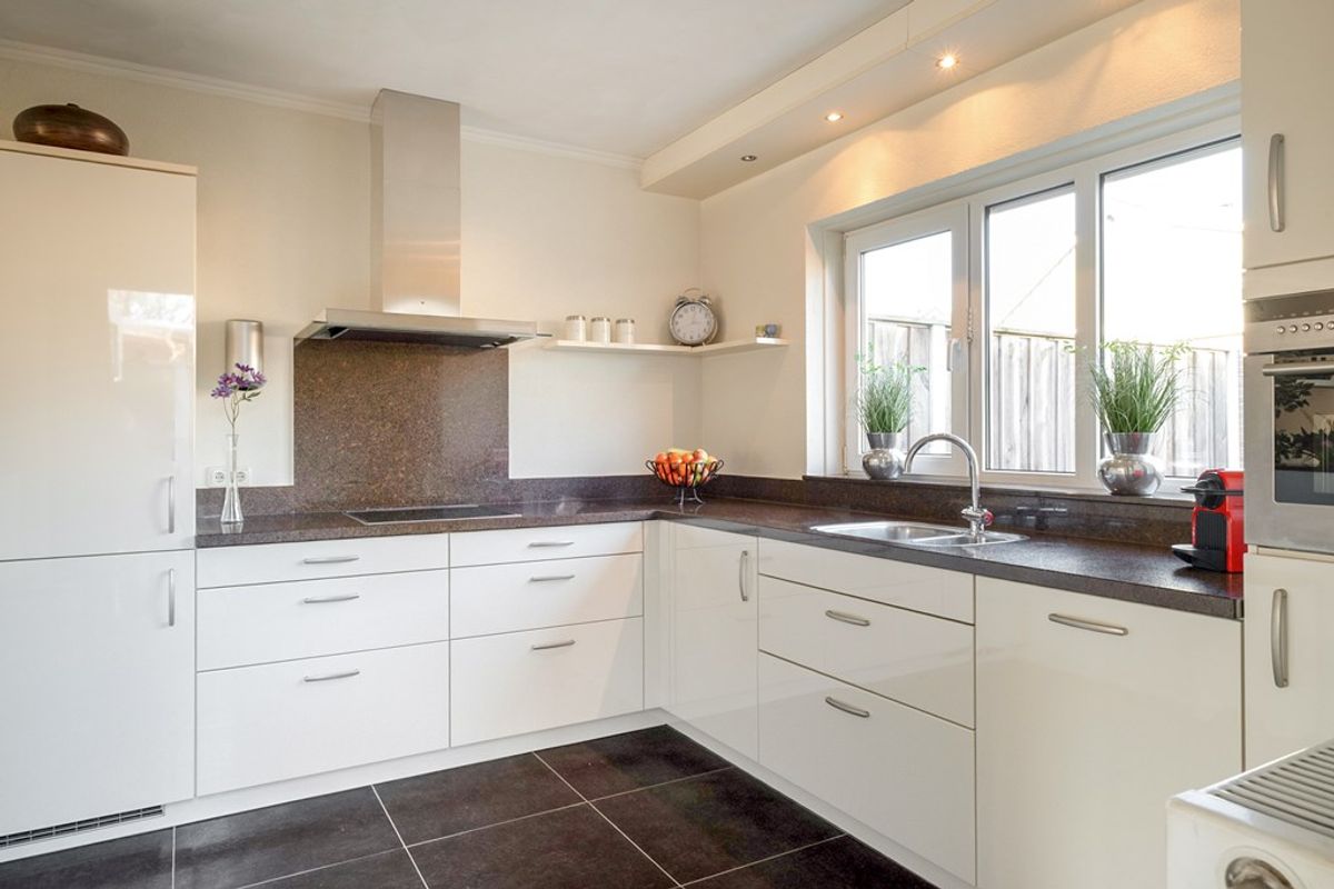 De indeling is logisch en praktisch, met voldoende ruimte voor een gezellige zithoek én een eethoek met vaste trapkast voor extra opslag. Hier hoef je niet eerst na te denken over hoe je het gaat indelen — het voelt direct goed. De moderne keuken is in 2010 vernieuwd en voorzien van diverse inbouwapparatuur. Vanuit de keuken loop je zo de besloten en verzorgde tuin in, een fijne plek om in alle rust van buiten te genieten.