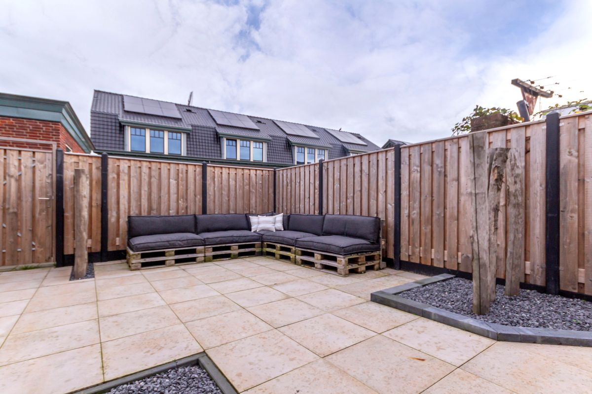 Via de tuindeur bereik je de achtertuin, die recent is vergroot door de aankoop van extra grond. De tuin is nu heerlijk ruim en voorzien van sierbestrating en mooie houten palen ter afscheiding. Daarnaast is er een recent aangebouwde stenen berging, compleet met elektra, ideaal voor het opbergen van fietsen, gereedschap en tuinbenodigdheden.