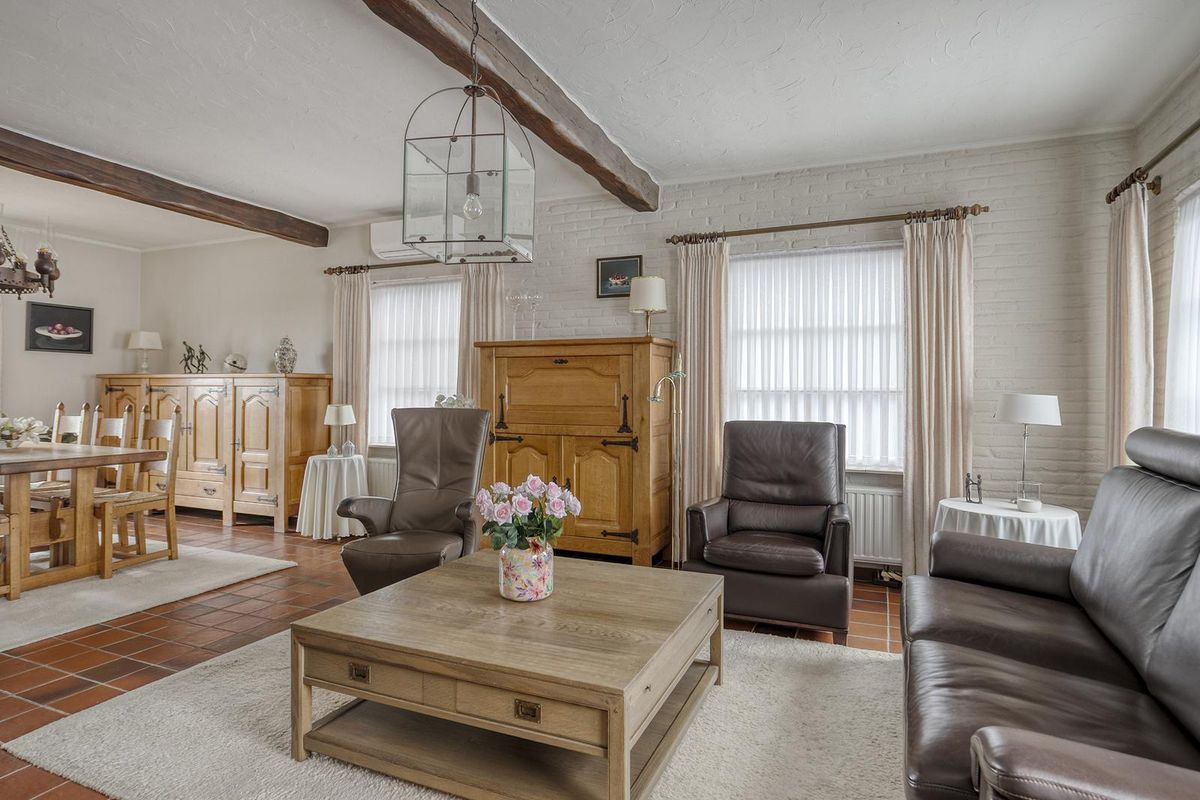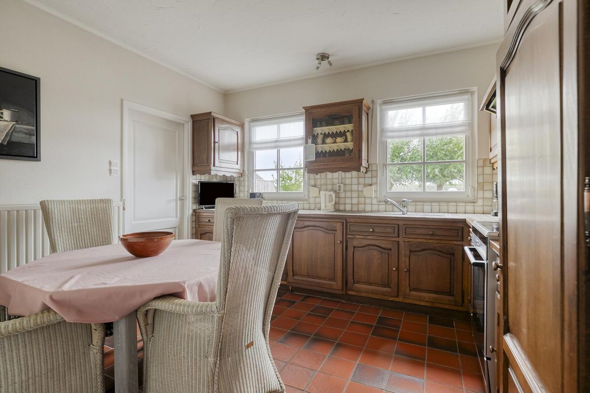 Bij binnenkomst valt meteen de ruime hal op, met toegang tot het toilet (met fonteintje), de meterkast en de trapopgang naar de verdieping. Vanuit de hal betreedt je de royale woonkamer, waar dubbele tuindeuren zorgen voor een prachtig zicht op het achterliggende polderlandschap. De zichtbare balken in het plafond geven de ruimte extra karakter, terwijl de houtkachel zorgt voor een warme en gezellige sfeer tijdens de koudere maanden. Voor extra comfort is de woonkamer bovendien voorzien van airconditioning (2023). Aansluitend tref je de gezellige eikenhouten woonkeuken, waar koken en tafelen moeiteloos samengaan. De ruime bijkeuken is praktisch ingedeeld met aansluitingen voor wasmachine en droger, een extra gootsteen en de opstelling van de recente cv-ketel (2023). Vanuit de bijkeuken heb je toegang tot de garage, voorzien van dubbele houten deuren; ideaal voor hobbyisten of het stallen van de auto en/of fietsen.