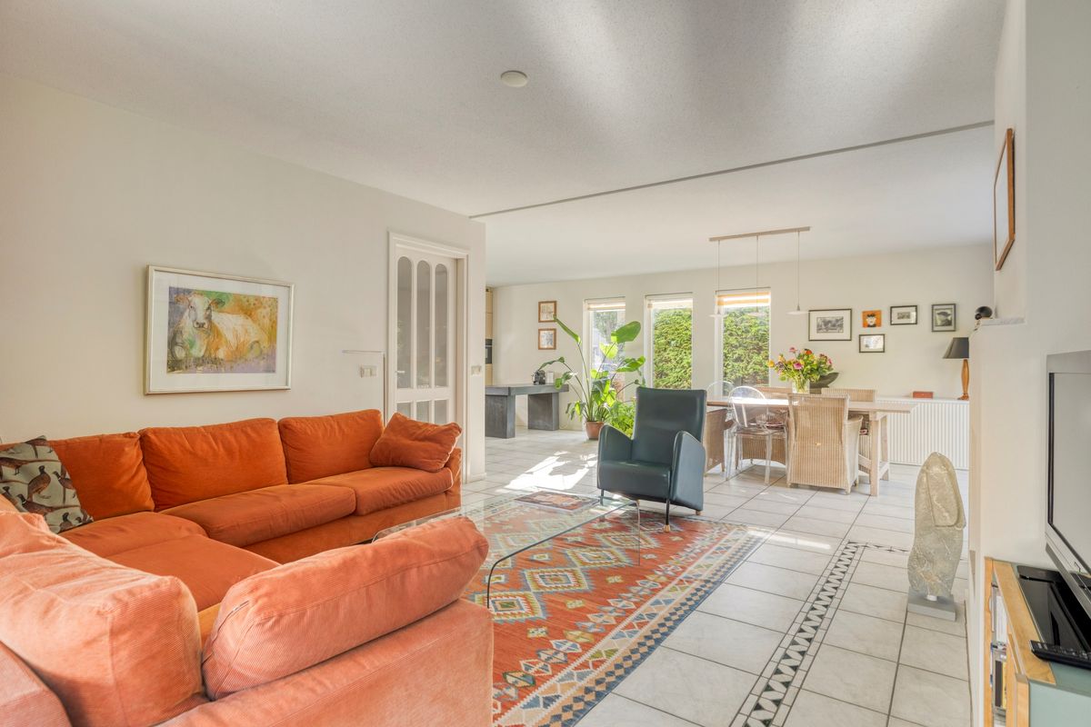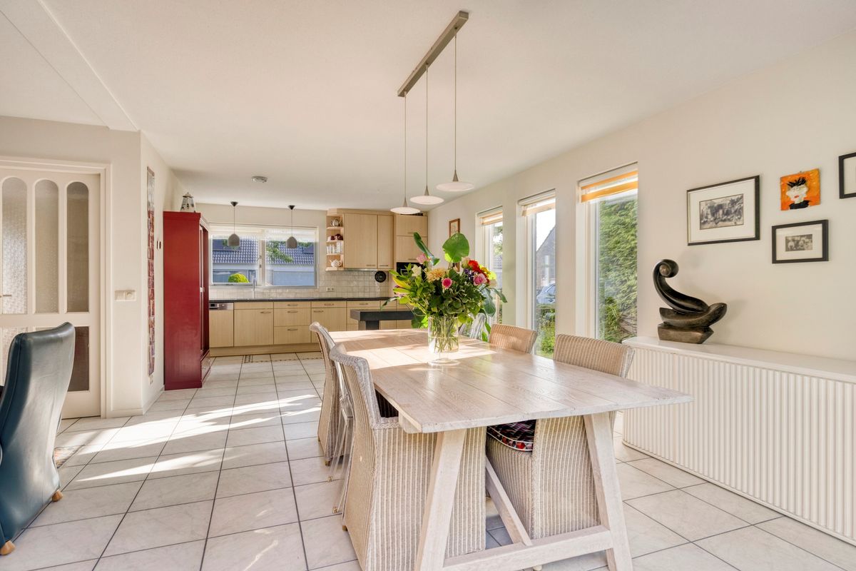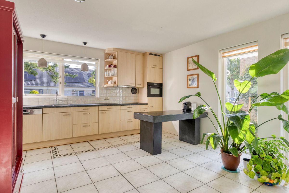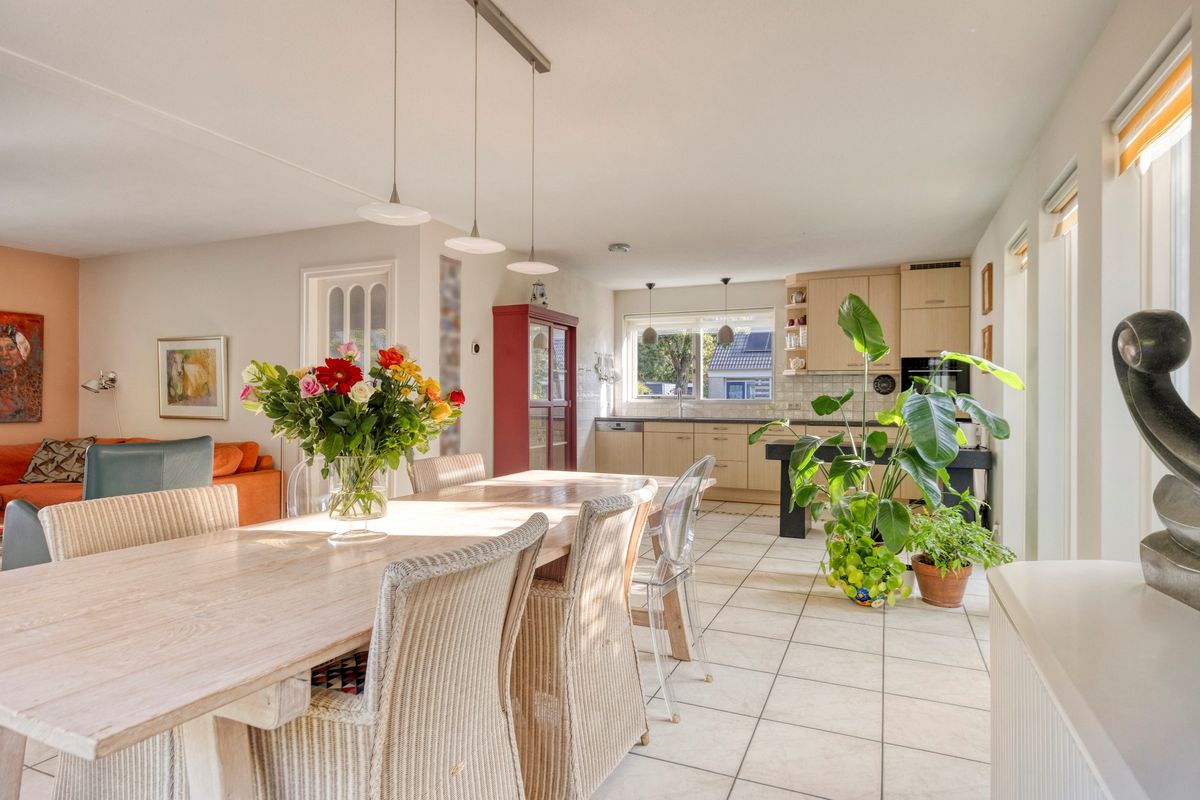 Via de ruime hal met toilet en trapopgang is er toegang tot de inpandige garage en de lichte woonkamer. De inpandige garage is voorzien van een nieuwe geïsoleerde deur in 2024. De woonkamer is bijzonder ruim en licht door de vele raampartijen en de schuifpui naar de tuin. Er is volop ruimte om verschillende hoeken te creëren, zoals een kinderhoek, een rustige zithoek of een fijne thuiswerkplek. De open keuken met recht keukenblok sluit hier mooi op aan. De keuken is voorzien van een quooker (2024), inductiekookplaat (2024), koelkast, oven (2024) en afzuigkap.