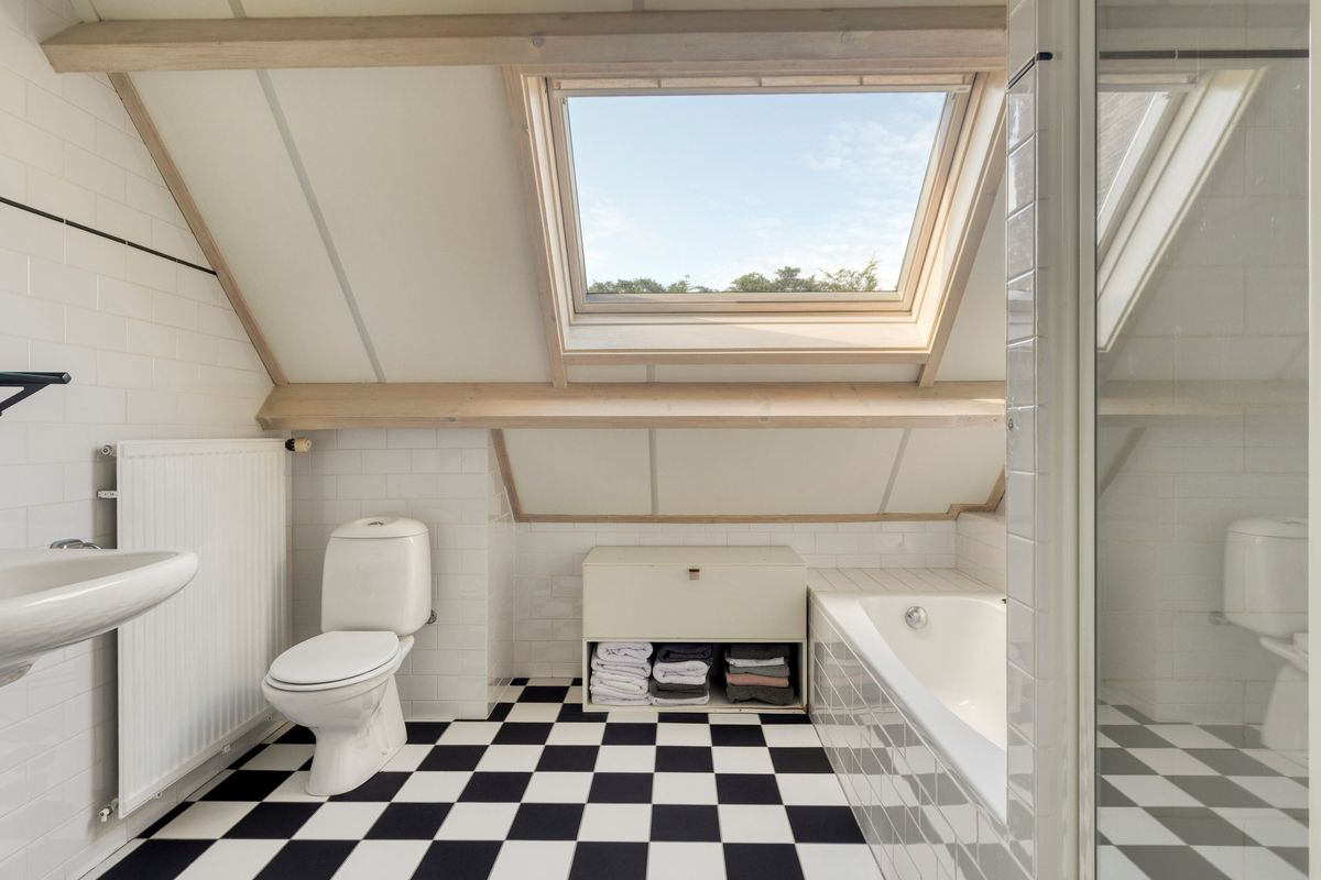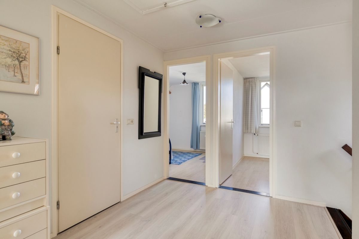 Op de eerste verdieping vind je de overloop met toegang tot maar liefst vier mooie slaapkamers. De badkamer is compleet uitgerust met een douche, toilet en dubbele wastafel. Daarnaast is er een bergzolder bereikbaar via een vlizotrap, ideaal voor extra opslag.