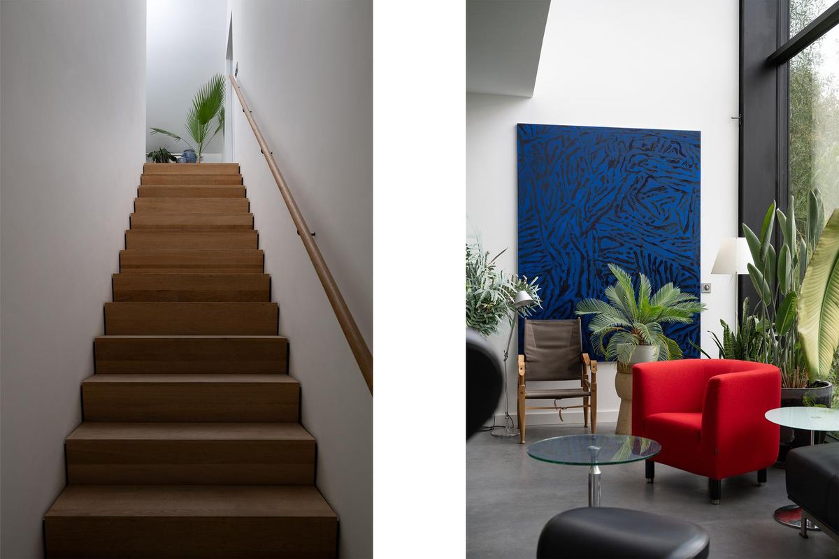 Upstairs, the atmosphere shifts to calm and secluded. A spacious bedroom with ensuite bathroom and separate living area creates a private retreat – perfect for reading, working, or simply unwinding.