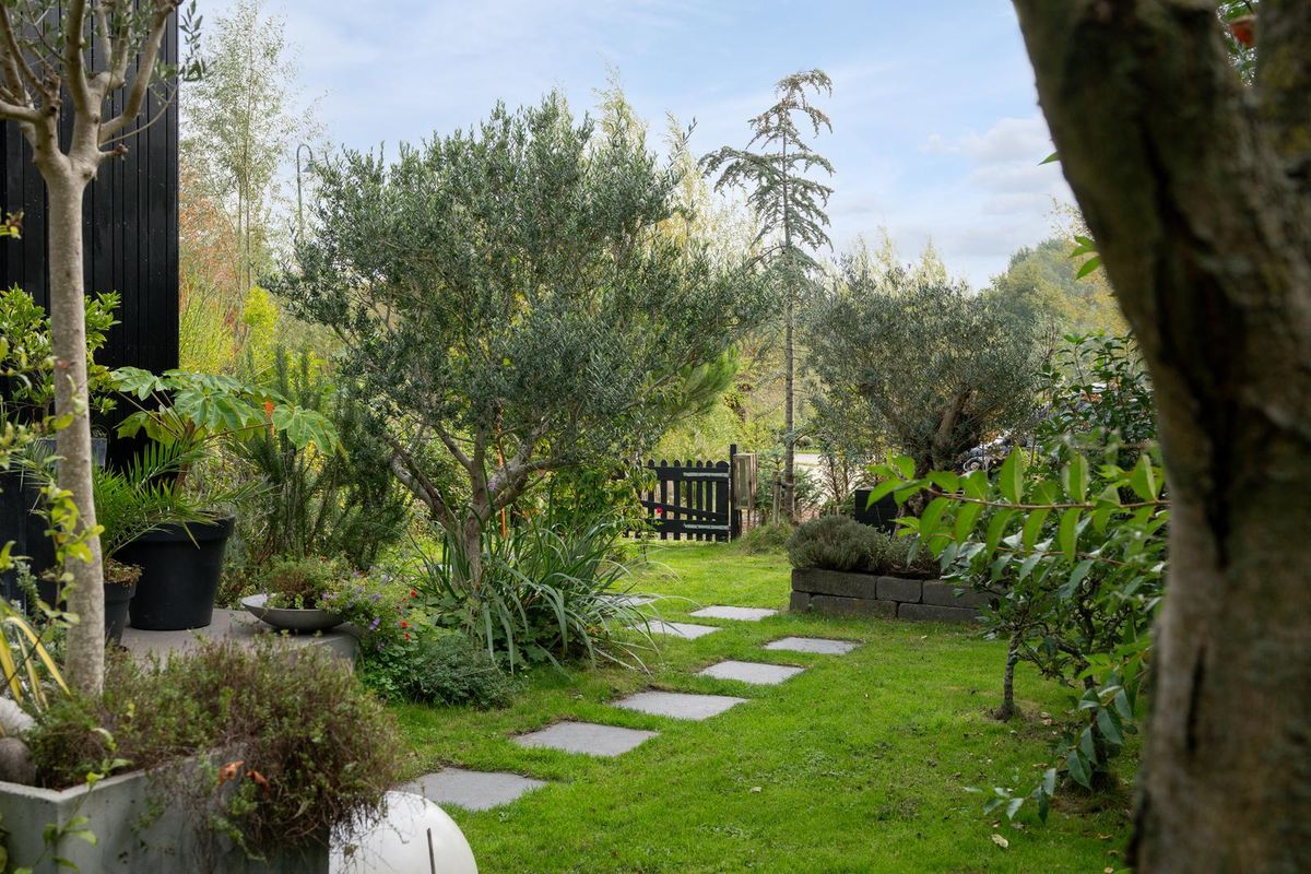 De tuin is een verlengstuk van de woning: volwassen groen, Mediterrane beplanting en meerdere terrassen die uitnodigen tot ontspannen en samenzijn. Dankzij de beschutte ligging geniet je hier in alle seizoenen van rust, privacy en natuur.
