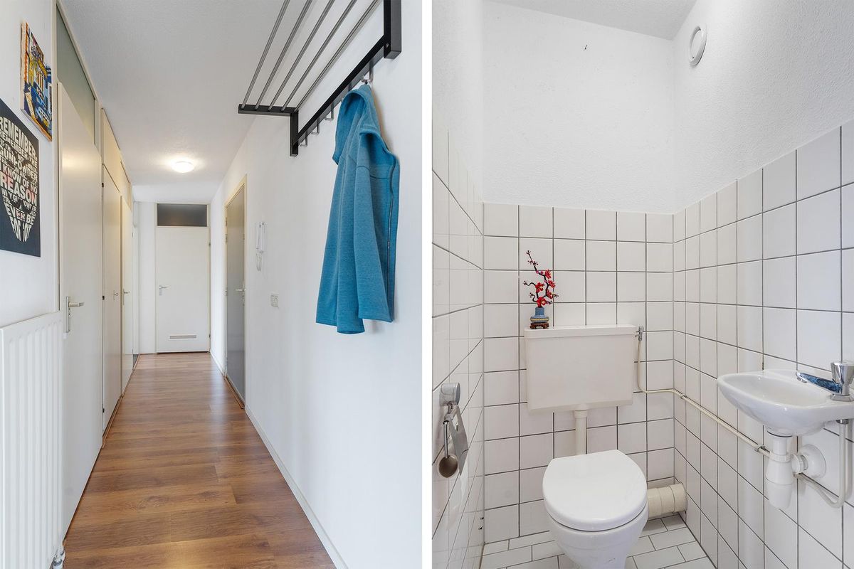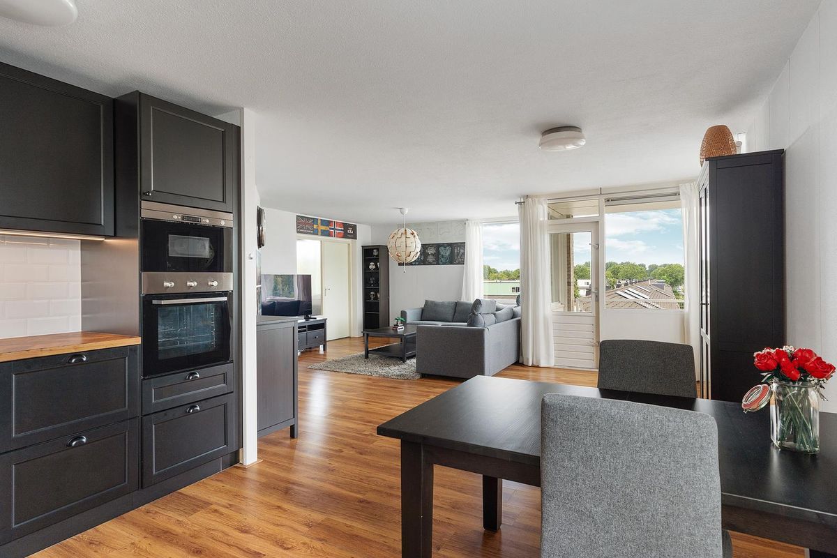 De entree geeft toegang tot een ruime hal met meterkast, toilet en toegang tot alle vertrekken. De woonkamer heeft veel raampartijen en is daardoor licht en zonnig. Het appartement is aan de achterzijde vrij gelegen. De woonkamer is fraai afgewerkt en beschikt over toegang naar het balkon. Vanaf het balkon kunt u tot in de laatste uurtjes genieten van het zonnetje. De open keuken is uitgevoerd in een rechte opstellingen en uitgerust met diverse inbouwapparatuur zoals een vier pits gasfornuis met afzuigkap, koel/vries combinatie, oven, magnetron en vaatwasser.
