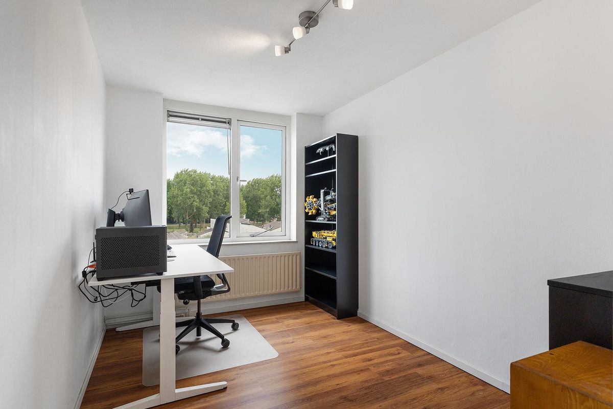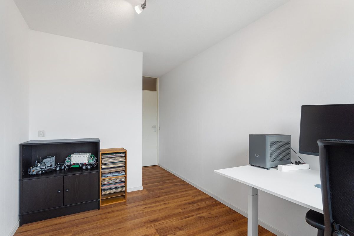 Er zijn twee ruime slaapkamers, waarvan één ook uitstekend als werkkamer gebruikt kan worden. De badkamer is netjes afgewerkt en voorzien van een douche en wastafel. Daarnaast is er een aparte ruimte met aansluiting voor de wasmachine en de opstelplaats van de cv-ketel, handig en netjes weggewerkt!