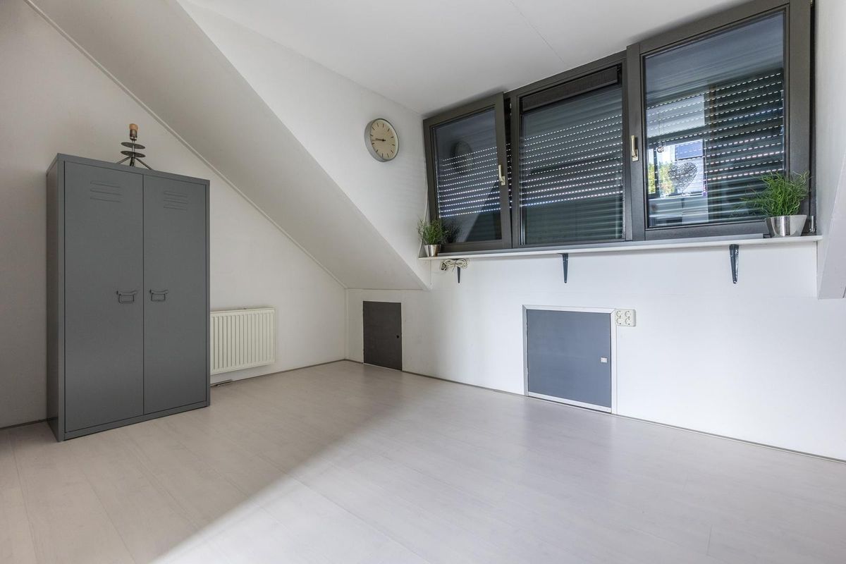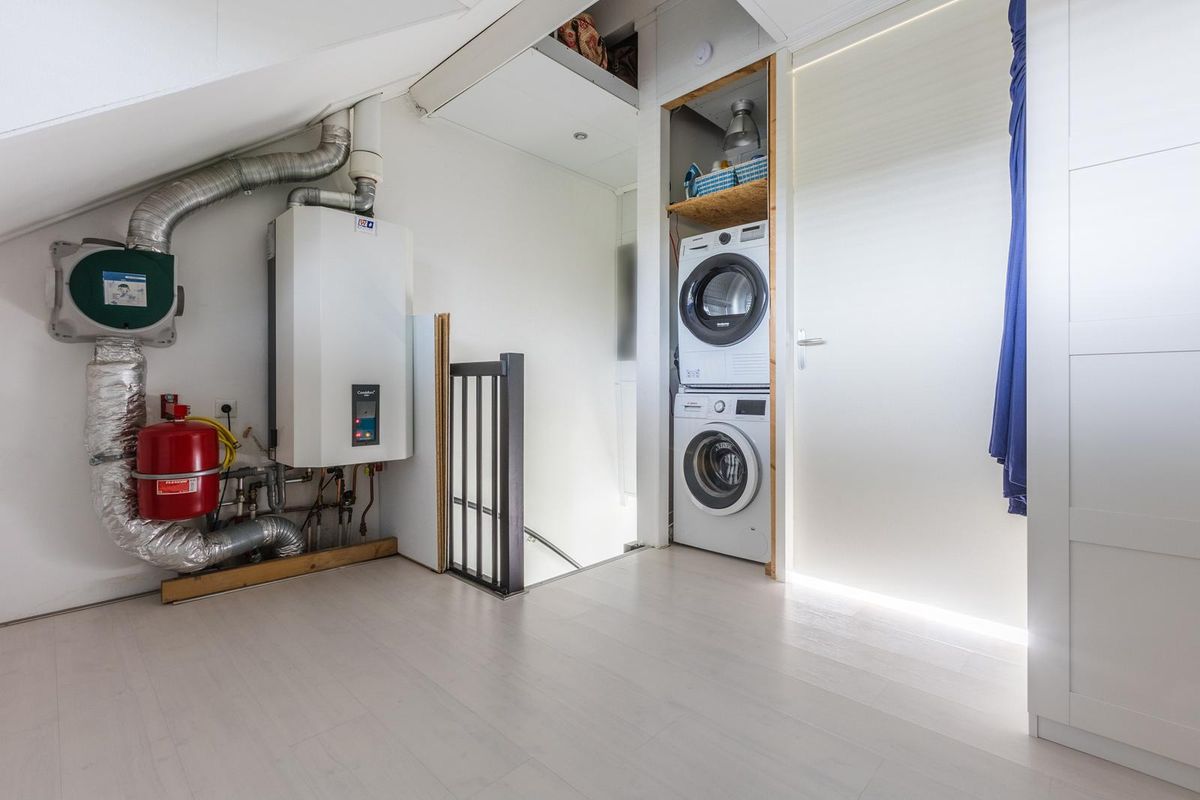 Zolderverdieping: op deze etage is middels twee grote dakkapellen veel extra leefruimte gecreëerd. Door de keuze voor lichte laminaatvloer is deze etage aangenaam licht en ruimtelijk. Op de zolder is de cv-ketel (Daalderop Combifort 24/80+, 2006) opgesteld en de aansluitingen voor wasmachine en –droger zijn in een bergkast te vinden. Bergruimte is achter het knieschot te vinden. Door de dakkapel is vrij eenvoudig een extra (slaap)kamer op zolder te realiseren. In de derde slaapkamer is de tweede dakkapel te vinden. De slaapkamer is ruim en licht en heeft voldoende bergruimte, deels achter het knieschot.