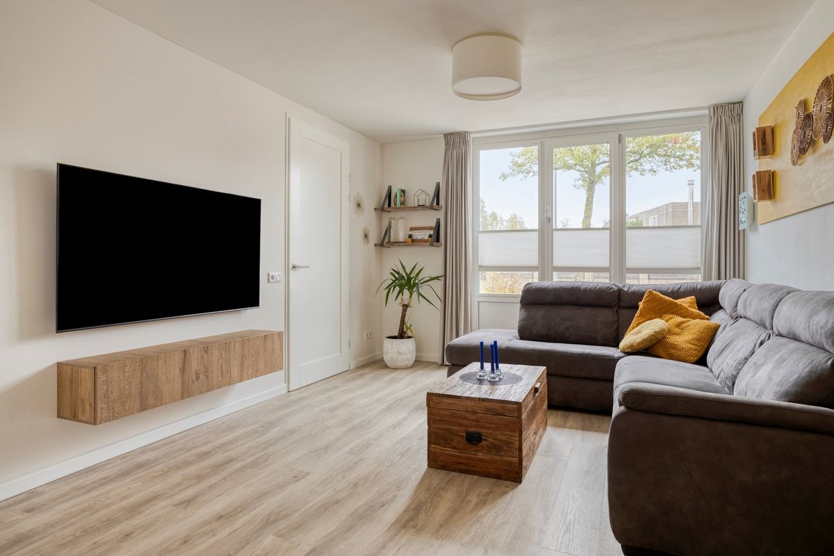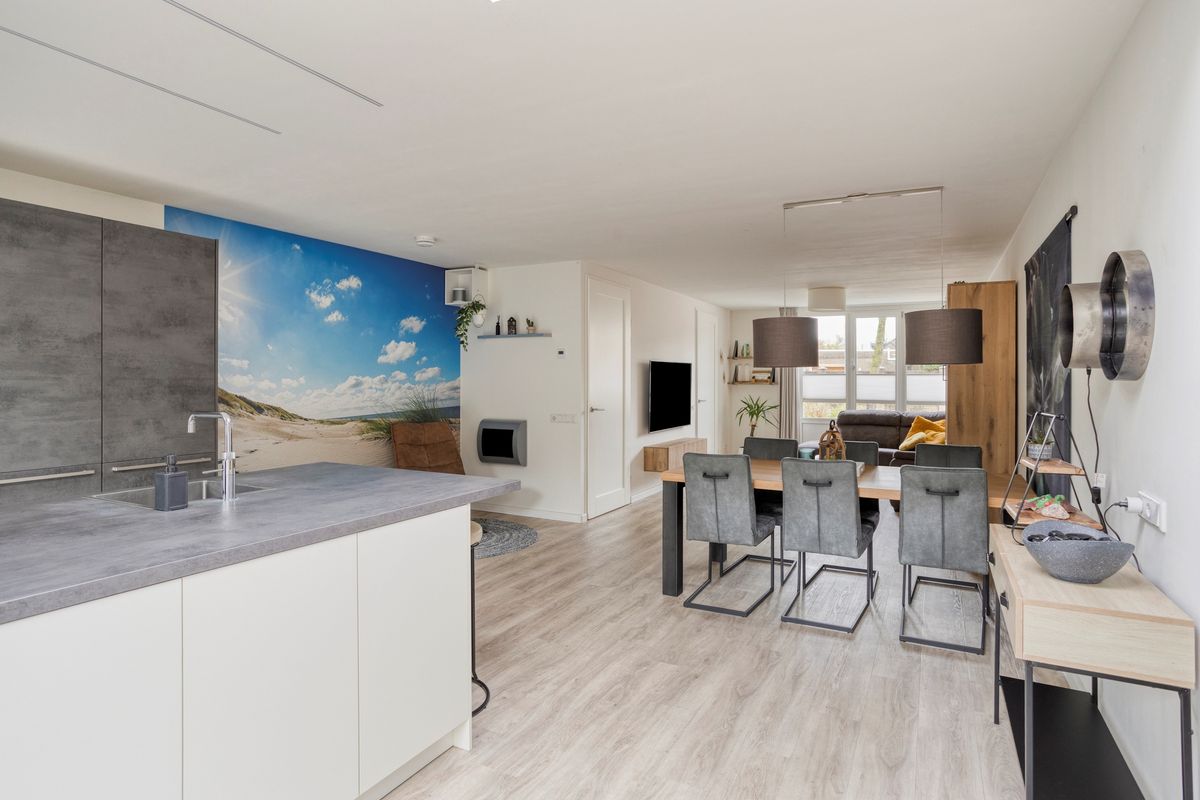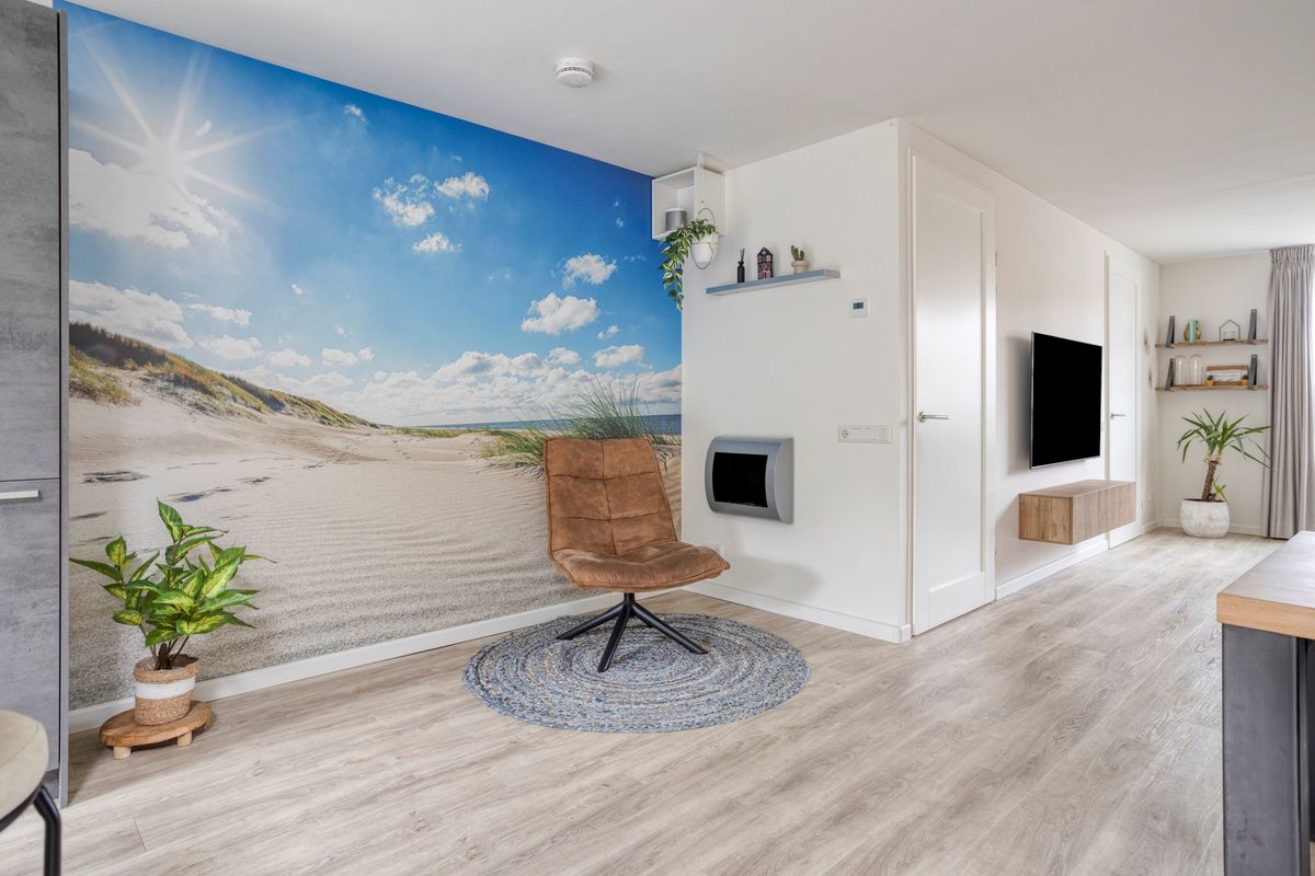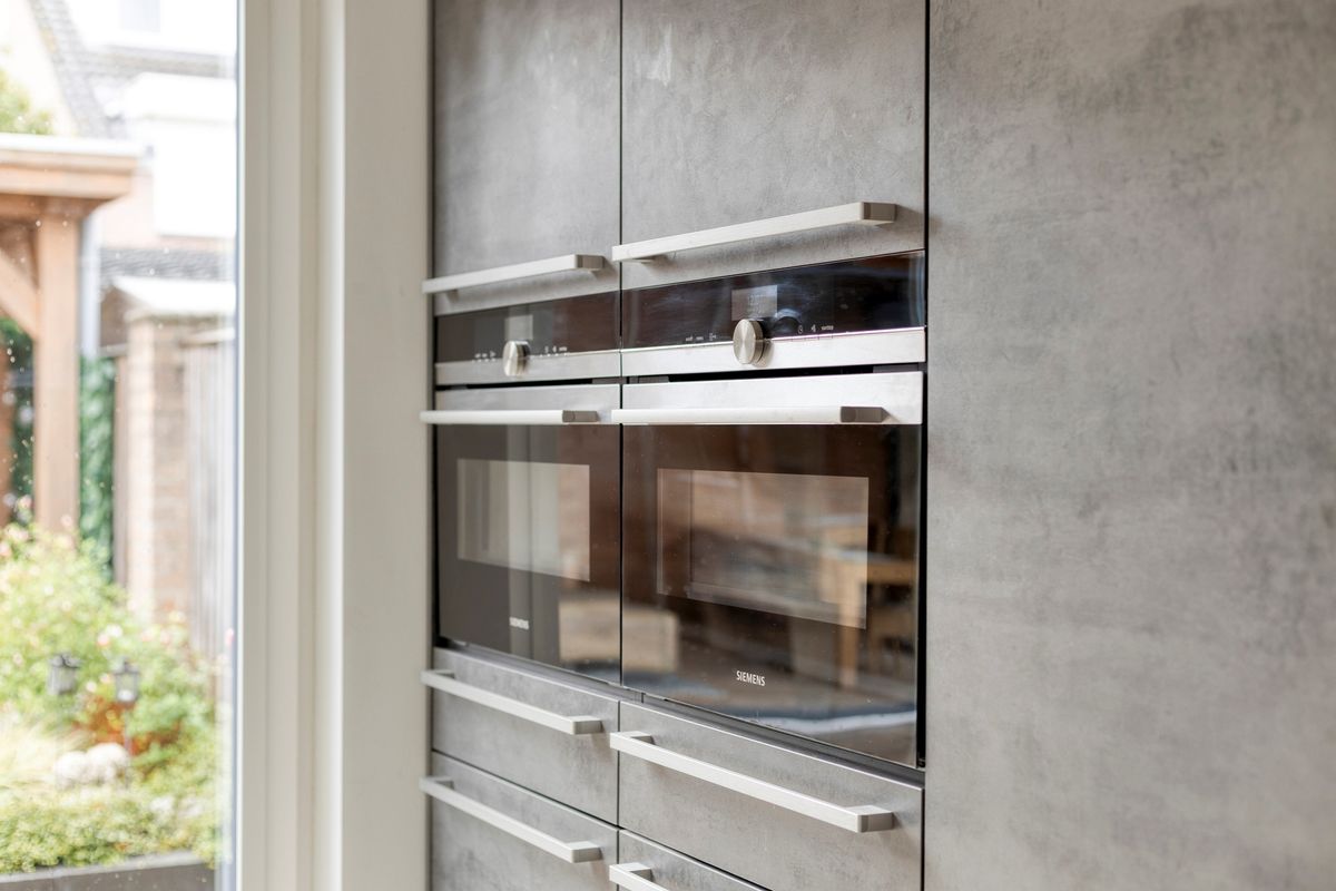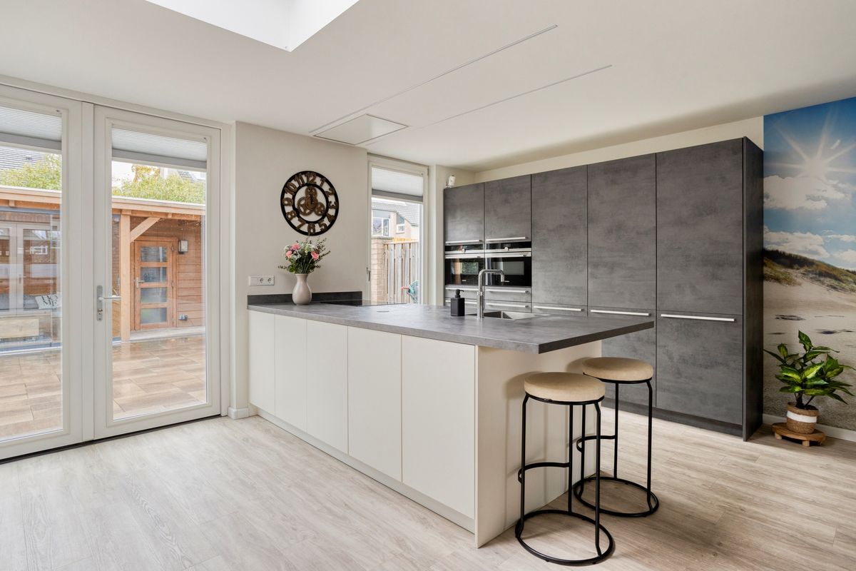 De ruime en lichte woonkamer met open keuken is v.v. tuindeuren welke toegang geven tot de achtertuin. Vanuit de woonkamer is de trapopgang naar de eerste verdieping bereikbaar. Deze trapopgang is v.v. een praktische trapkast wat voor extra bergruimte zorgt. Ook is er vanuit de woonkamer een ruimte bereikbaar welke te gebruiken is als speel-of werkkamer. Vanuit deze ruimte is er een directe toegang tot de aangebouwde berging. De keuken met wandopstelling en een kookeiland is v.v. diverse kasten en lades, een kunststof werkblad met spoelbak en kokend waterkraan (Quooker), afzuigkap (Novy), 2 x een combi-oven, koelkast en vaatwasser (allen Siemens). Het toilet is deels betegeld en v.v. een hangend toilet en fonteintje. De vloer van de begane grond is v.v. pvc en vloerverwarming. De wanden en plafonds zijn afgewerkt met stucwerk. De kozijnen zijn van kunststof met HR++ glas. Op de begane grond is airconditioning (Mitsubishi) aanwezig.