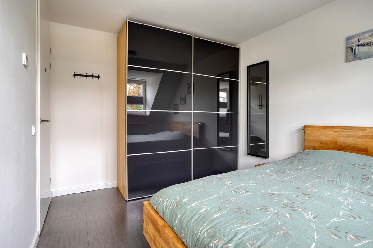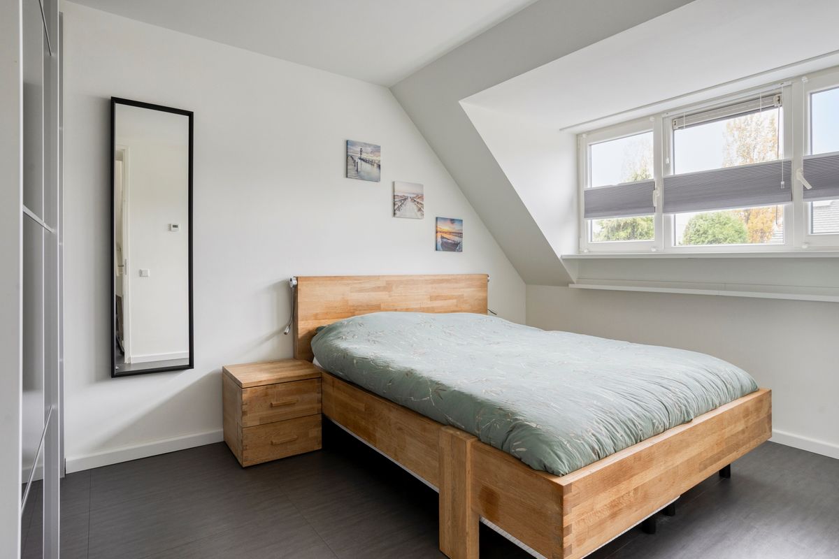 Vanuit de overloop zijn 3 slaapkamers, de badkamer en de trapopgang naar de tweede verdieping bereikbaar. De badkamer is grotendeels betegeld en v.v. een hangend toilet, een ligbad, wastafelmeubel met kast, douchecabine en een design radiator. De vloer van de eerste verdieping is v.v. pvc en vloerverwarming met zoneregeling. De wanden en plafonds zijn afgewerkt met stucwerk. De kozijnen zijn van kunststof met HR++ glas. Het raam van de ouderslaapkamer en de badkamer is tevens v.v. rolluiken (elektrisch).