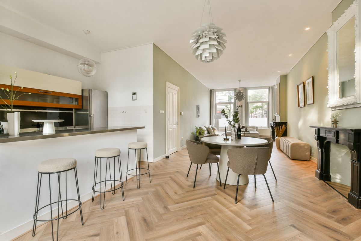 Bij binnenkomst via uw eigen hal voelt de woning direct uitnodigend aan. Zodra u doorloopt, treedt u binnen in de royale woonkamer aan de linkerkant van de hal. Grote ramen laten het daglicht overvloedig naar binnen vallen en creëren een warme, lichte sfeer waarin u zich direct thuis voelt. Vanuit de woonkamer heeft u bovendien een vrij uitzicht op de levendige Nieuwe Binnenweg, waardoor u dagelijks kunt genieten van het dynamische straatbeeld. En wanneer de dag ten einde loopt, schijnt de avondzon prachtig de woonkamer binnen, wat zorgt voor een warme en ontspannen ambiance.