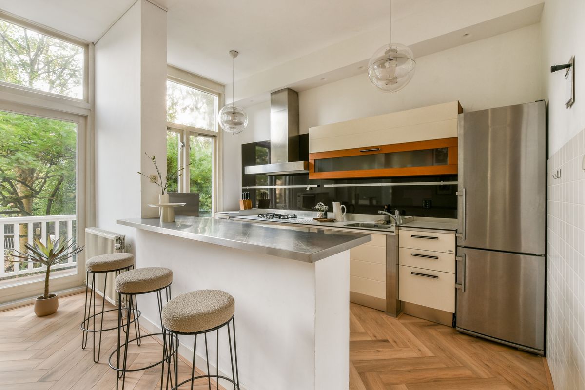 Upon entering through your private hallway, the home immediately feels inviting. Continuing inside, you step into the spacious living room on the left. Large windows let in abundant daylight, creating a warm, bright atmosphere where you’ll instantly feel at home. From the living room, you also enjoy an unobstructed view of the lively Nieuwe Binnenweg, giving you a daily glimpse of the dynamic city life. As the day comes to a close, the evening sun streams beautifully into the room, adding a cozy and relaxed ambiance.