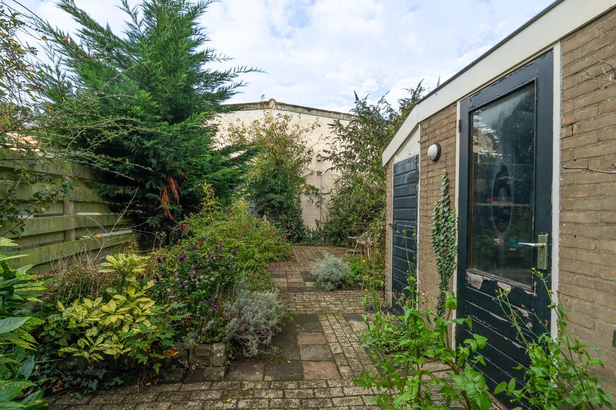 De achtertuin op het zonnige westen is netjes betegeld en aangelegd met groen, een betegeld terras en biedt volop privacy. In de aangebouwde stenen bergingen (totaal ca. 6 m²) kunt u met gemak fietsen, tuinspullen of gereedschap kwijt. Via de tuin is de eigen carport bereikbaar aan de achterzijde (Bijdorplaan). Deze carport is eenvoudig af te sluiten, waardoor een volwaardige garage tot de mogelijkheden behoort.