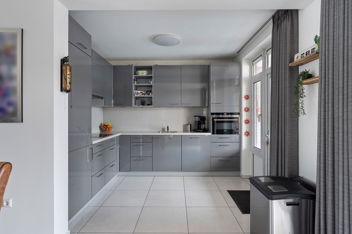 Halfopen keuken welke voorzien is van de volgende inbouwapparatuur: inductiekookplaat, afzuigkap, oven en een vaatwasser. Daarnaast is er voldoende opbergmogelijk beschikbaar in de keuken. In de keuken bevindt zich een elektrische boiler.