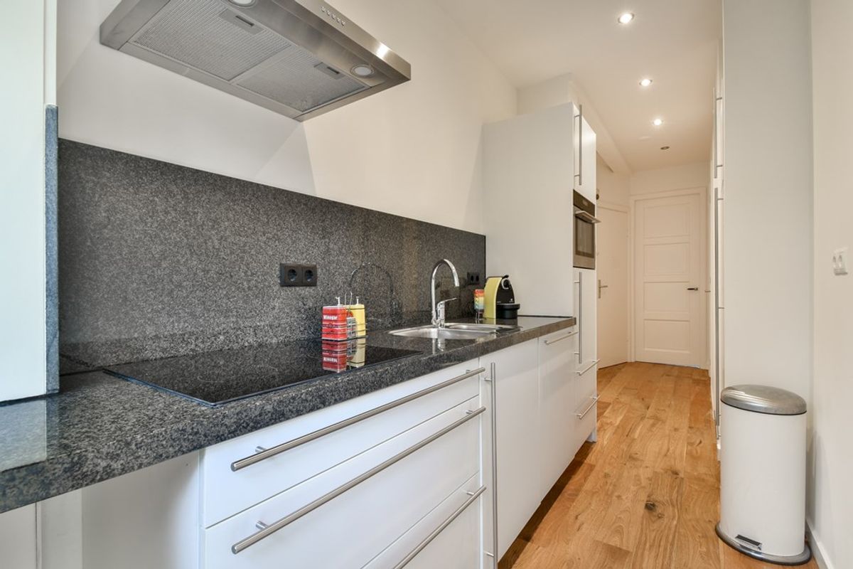 De aparte, luxe Poggenpohl keuken is volledig uitgerust en heeft onder andere een inductie kookplaat, afzuigkap, combimagnetron, vaatwasser en koelkast met vriezercompartiment. Het aanrechtblad is graniet. De keuken geeft toegang tot het balkon dat uitkijkt over de binnentuinen.
