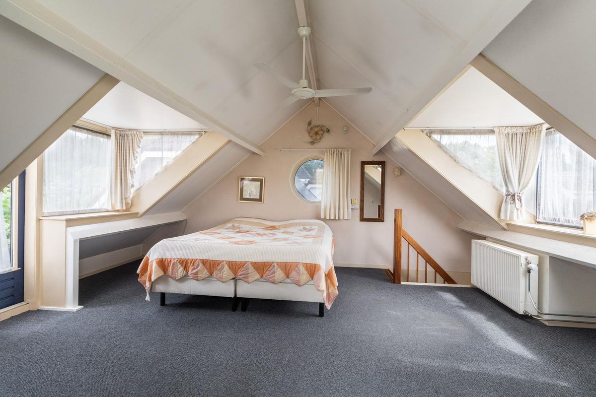 Via een vaste trap bereikt u vanuit deze kamer de garage, waar zich nog een extra toilet, douche en wastafel bevinden. De garage is perfect geschikt als zelfstandig woongedeelte voor bijvoorbeeld een ouder kind, een au-pair of als kantoor/praktijkruimte aan huis.