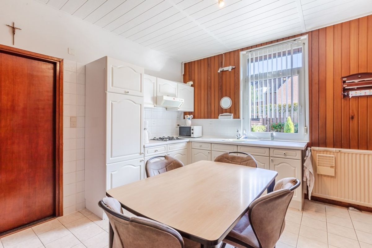 Aansluitend ligt de bijkeuken (5 m²) met witgoedaansluitingen, toegang tot de badkamer met douche en het separate toilet.