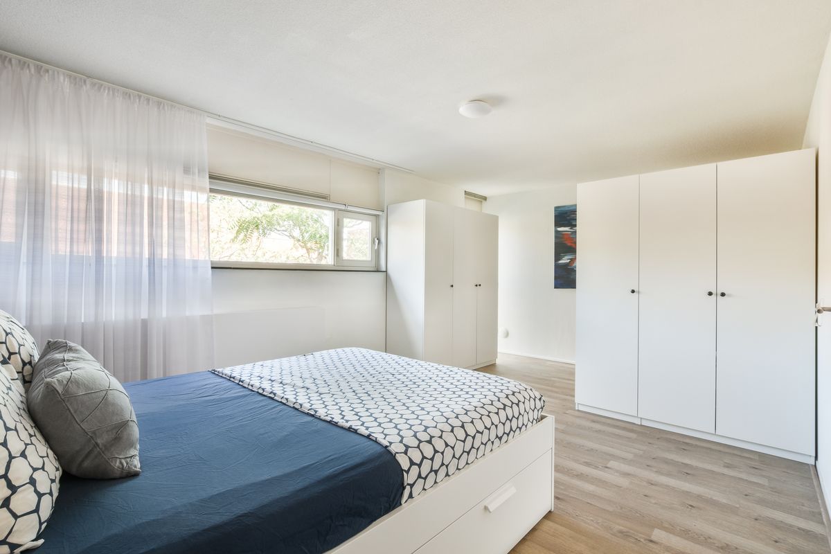 Tweede verdieping: Deze verdieping biedt twee royale slaapkamers en een overloop met Frans balkon. Daarnaast is er een praktische wasruimte met aansluiting voor wasmachine en droger, waar ook de warmtepomp en mechanische ventilatie zijn geplaatst. De afwerking is van hoog niveau: zowel de eerste als de tweede verdieping zijn voorzien van een strakke laminaatvloer.