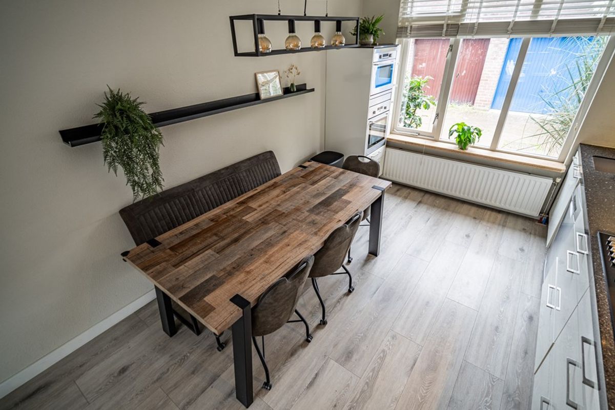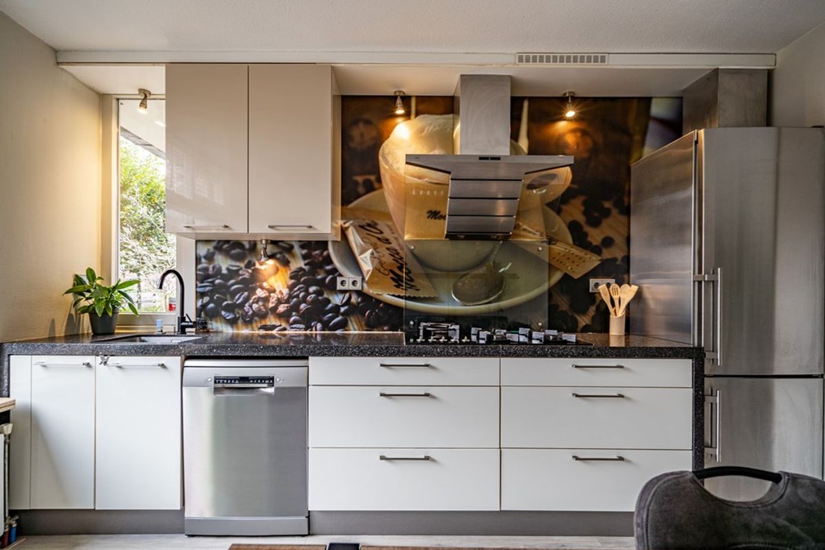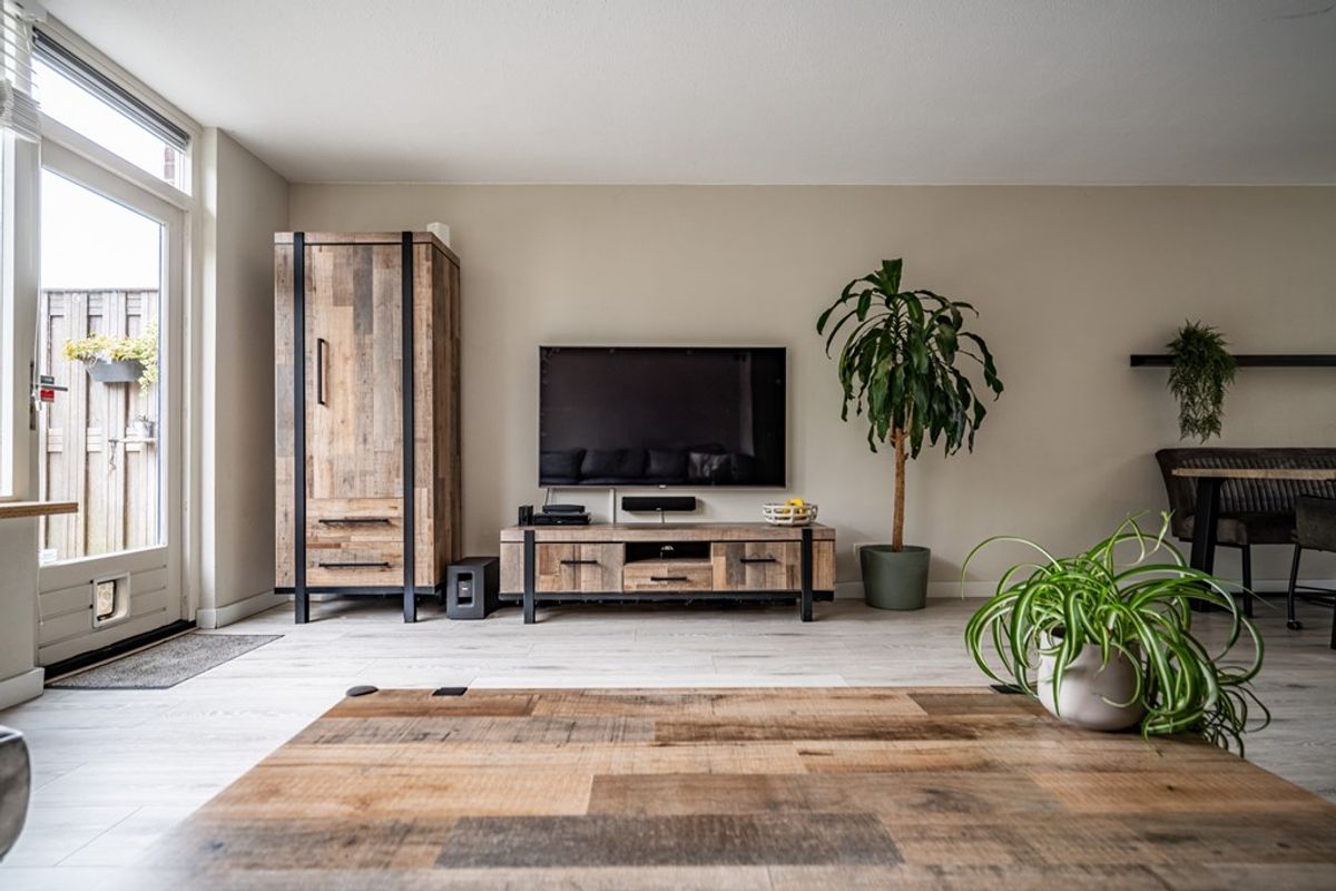 Via de hal met garderoberuimte betreedt u de lichte woonkamer, waar het royale vloeroppervlak en het uitzicht op de tuin direct in het oog springen. De open keuken aan de voorzijde is voorzien van een 4-pits fornuis, afzuigkap, vaatwasser, combi magnetron en volop bergruimte. Vanuit de keuken en woonkamer heeft u toegang tot de zonnige achtertuin die gelegen is op het zuiden met meerdere zithoeken en een praktische berging door de overkapping en schuur.