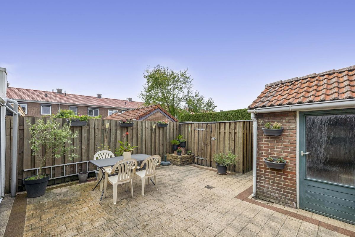 De achtertuin is bereikbaar via de serre en beschikt over een stenen berging met witgoedaansluitingen. Dankzij de vrije achterom is de tuin ook praktisch toegankelijk.