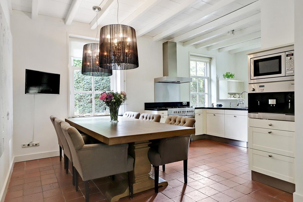 Bij binnenkomst door de elektrische poort ervaar je direct de exclusieve uitstraling van het geheel. De hal met meterkast en toilet met fontein geeft toegang tot een kantoorruimte en de royale leefkeuken: het kloppend hart van de woning. De keuken is uitgerust met o.a. een 6-pits gasfornuis, dubbele oven en biedt de mogelijkheid voor een extra haard. De charmante opkamer met kelder voegt zowel karakter als praktische bergruimte toe. De doorgang van de keuken naar de woonkamer is af te sluiten met een authentieke dubbele schuifdeur, die samen met de unieke deurposten en deuren zorgen voor een markante uitstraling.