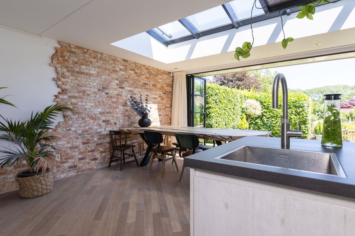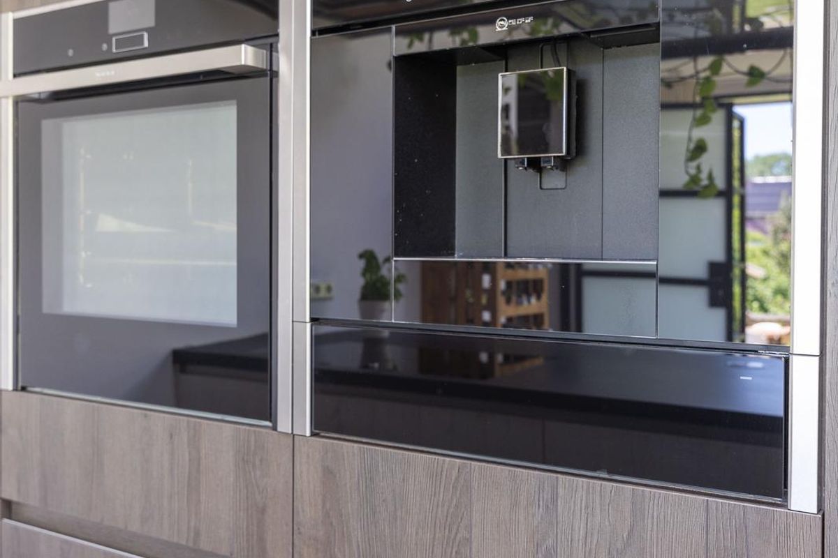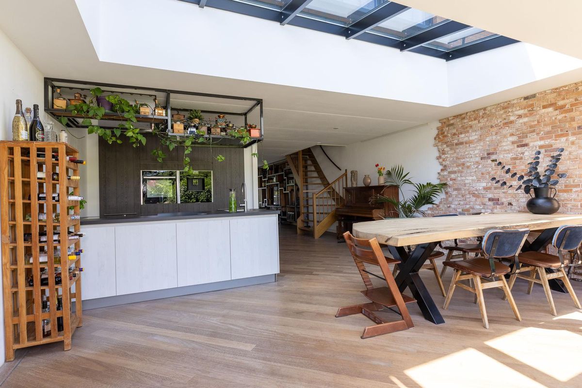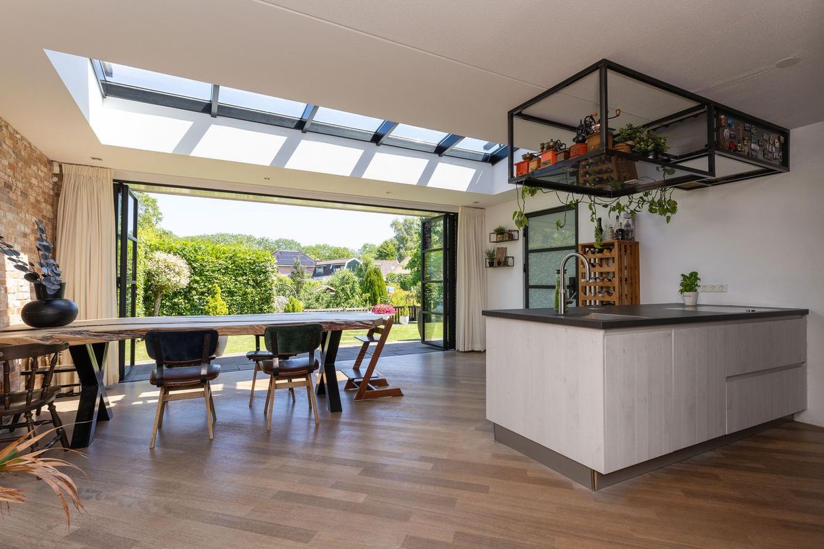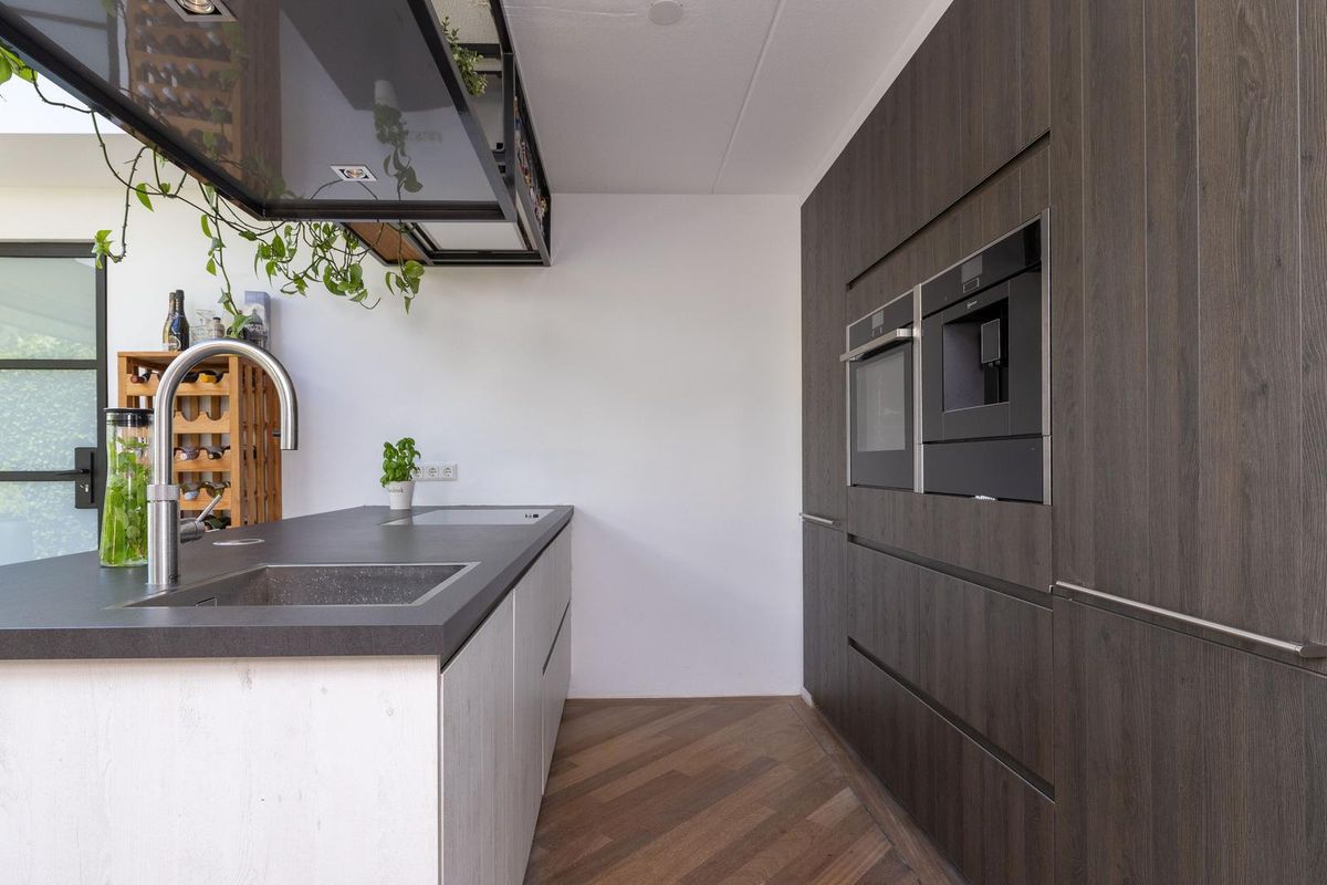 Bij binnenkomst valt direct de royale leefruimte op. De uitbouw aan de achterzijde is voorzien van openslaande deuren over de volledige breedte, wat zorgt voor een prachtige lichtinval en een natuurlijke verbinding met de tuin. Door de grote raampartijen en het zicht op het water heb je binnen het gevoel van een serre – een plek waar je elk seizoen van kunt genieten. De vloerverwarming op de begane grond zorgt voor extra comfort, terwijl de ruime woonkamer en de open indeling uitnodigen tot ontspannen en genieten. Koken en leven De keuken is een echte eyecatcher: stijlvol, functioneel en van alle gemakken voorzien. Of je nu een snelle maaltijd bereidt of uitgebreid wilt koken voor vrienden en familie – dit is een plek waar je graag bent.