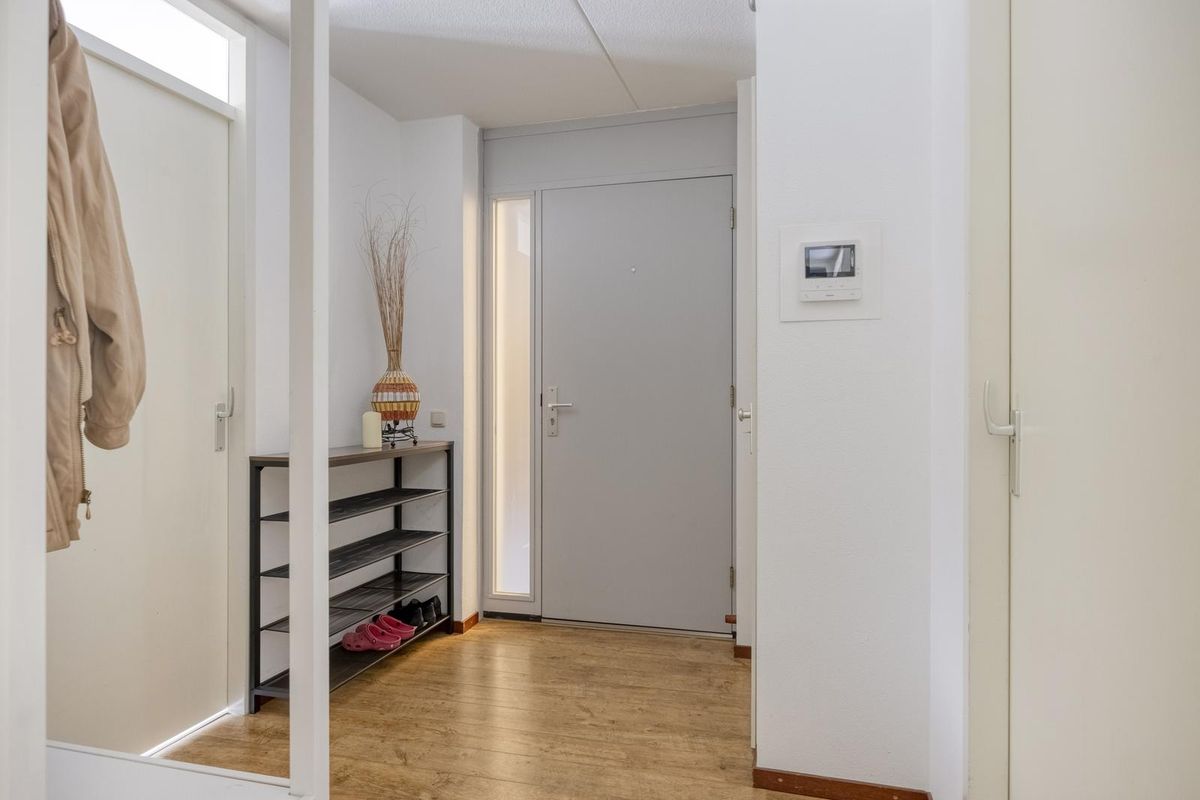 De entree (circa 9m²) is ruim opgezet met intercom installatie en is v.v. een garderobe.