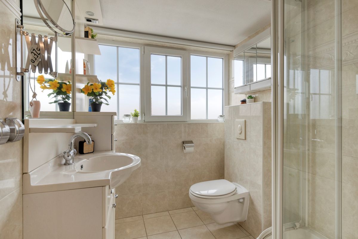 Boven vindt u twee ruime slaapkamers en een nette badkamer met tweede toilet, douchehoek, badkamermeubel en is voorzien van vloerverwarming.