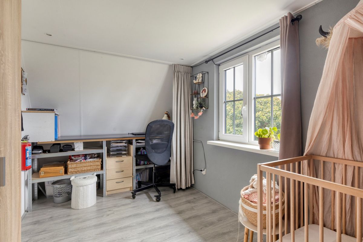 Buiten staat een vrijstaande houten berging met pannendak, en u parkeert met gemak twee auto’s op eigen terrein.