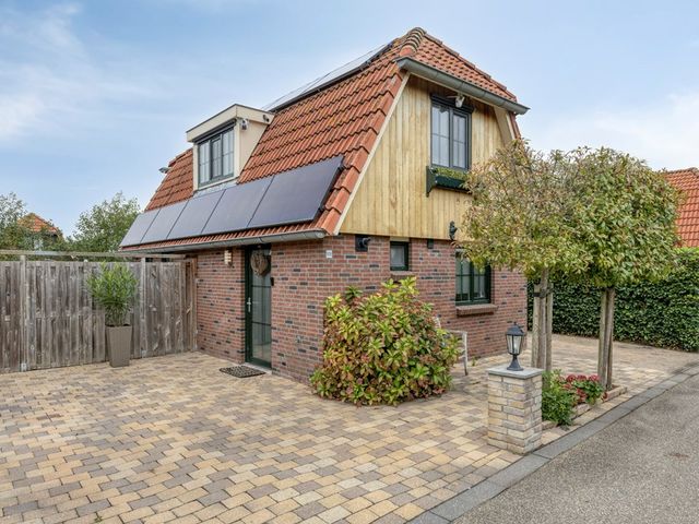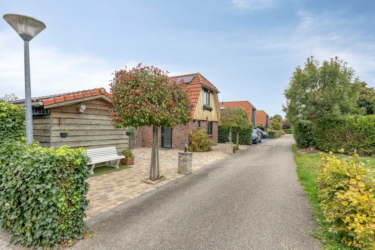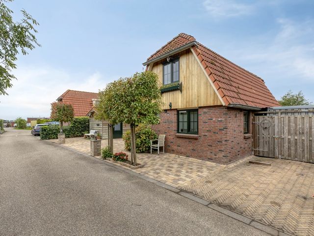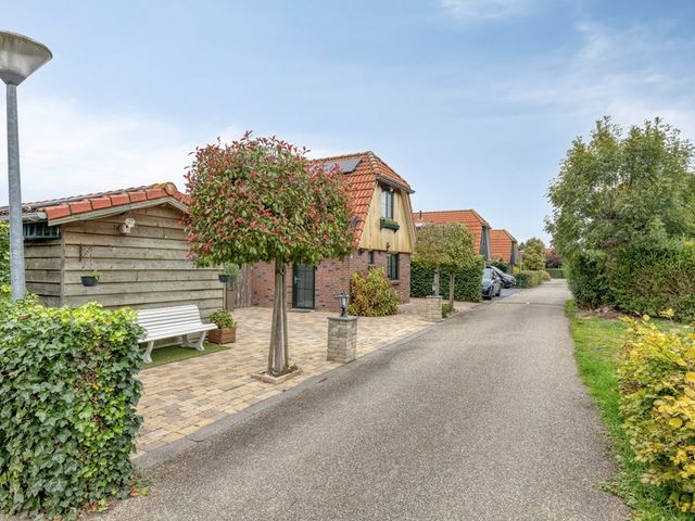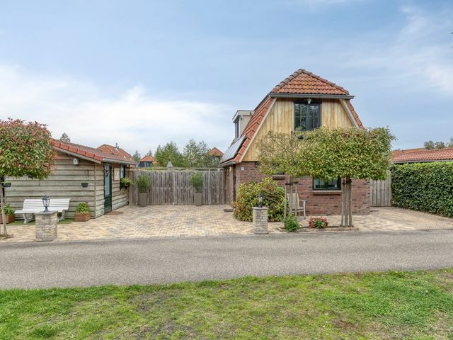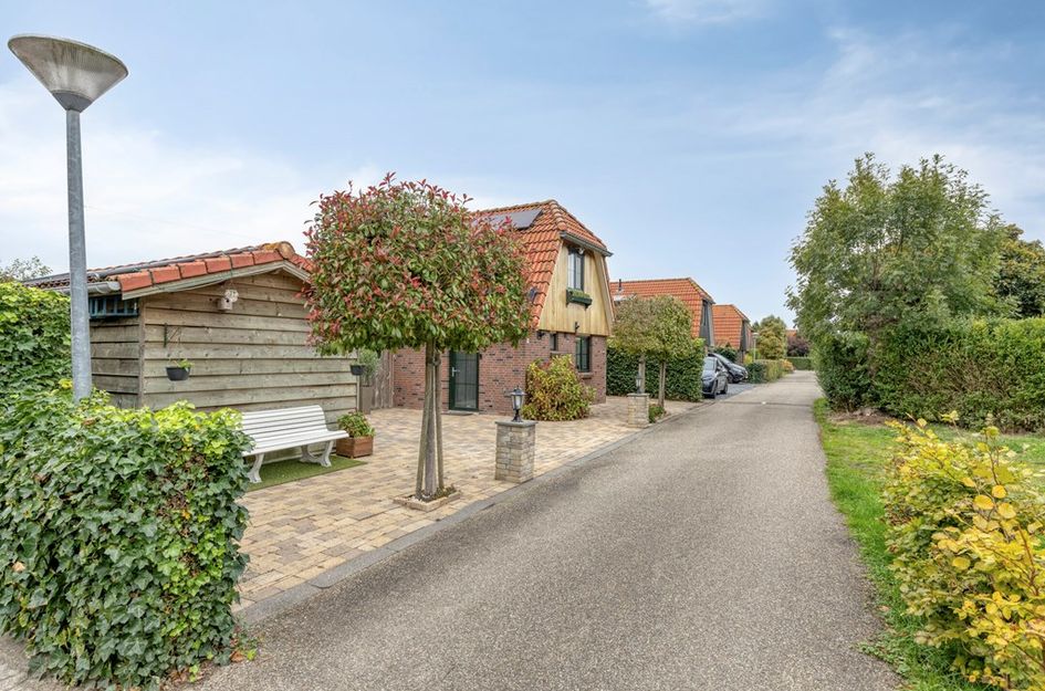 Buiten staat een vrijstaande houten berging met pannendak, en u parkeert met gemak twee auto’s op eigen terrein.