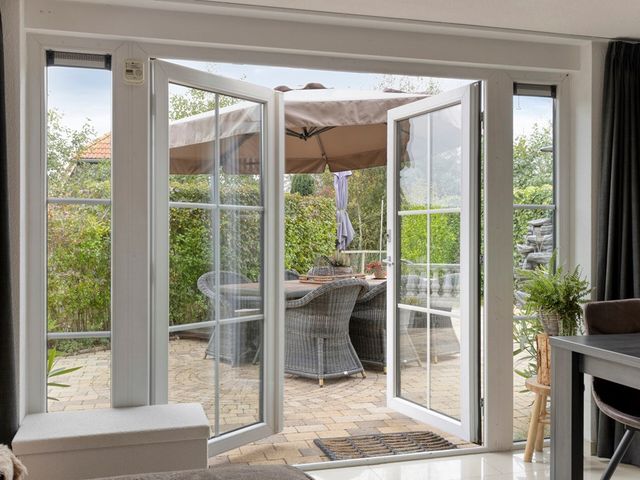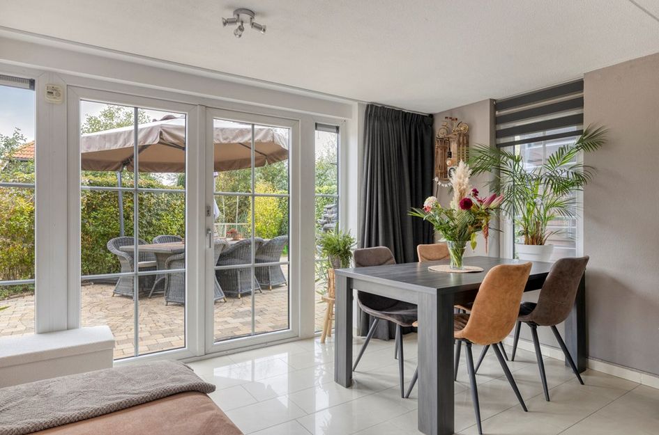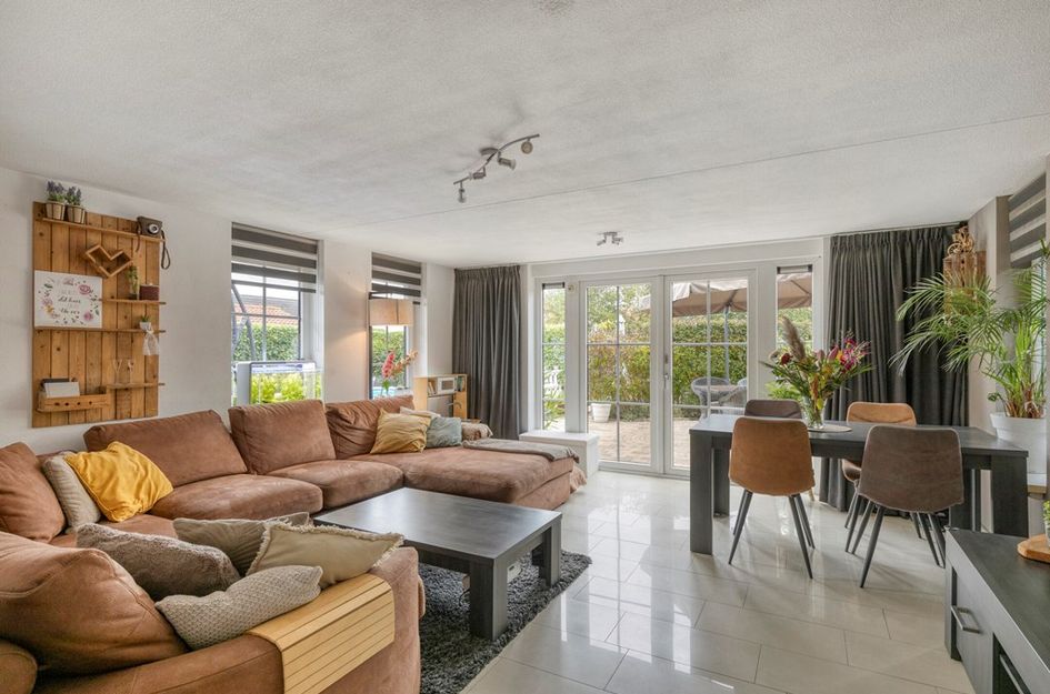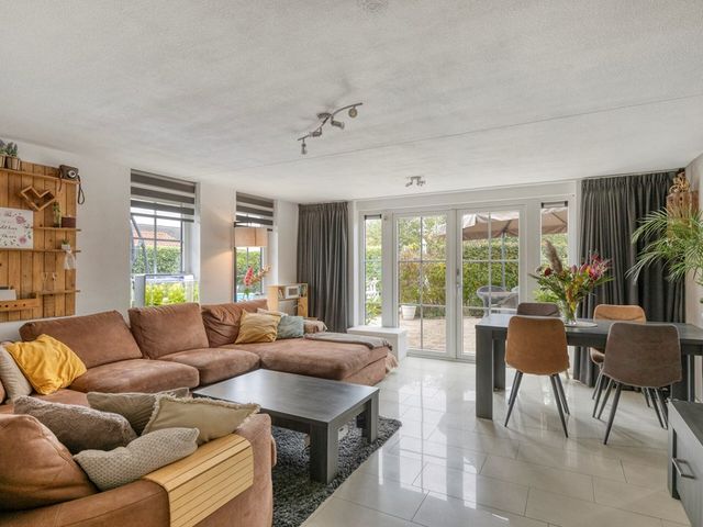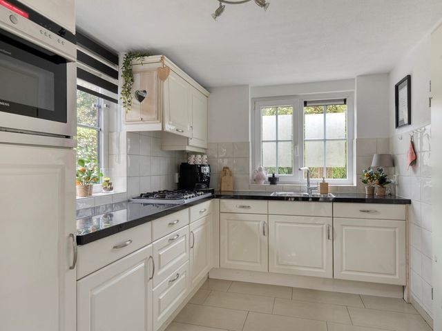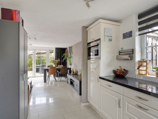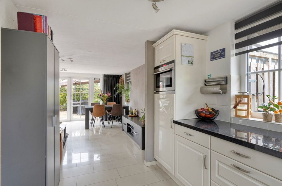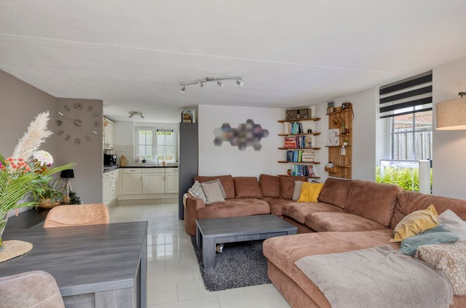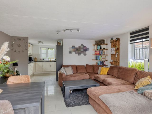 De lichte woonkamer is voorzien van vloerverwarming en openslaande deuren naar de tuin – een heerlijke plek om tot rust te komen. De open keuken beschikt over moderne inbouwapparatuur, ideaal voor gezellige diners of een goed glas wijn met uitzicht op het groen.