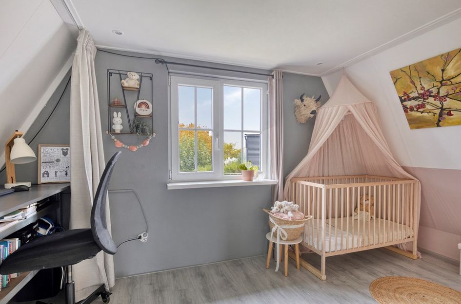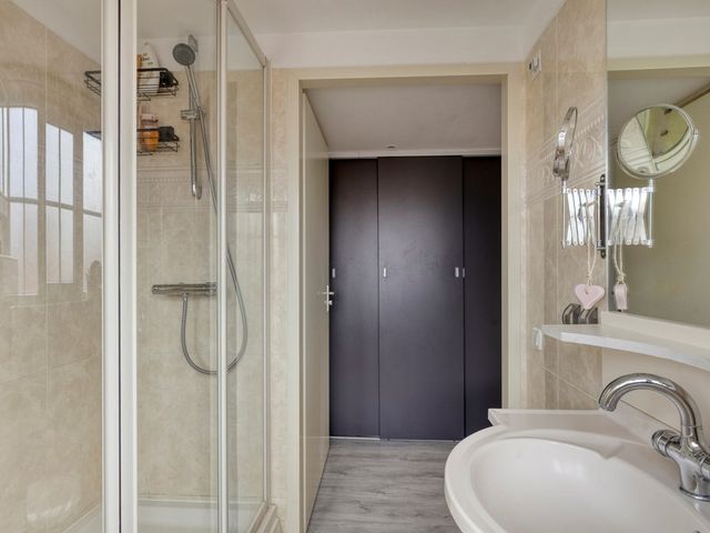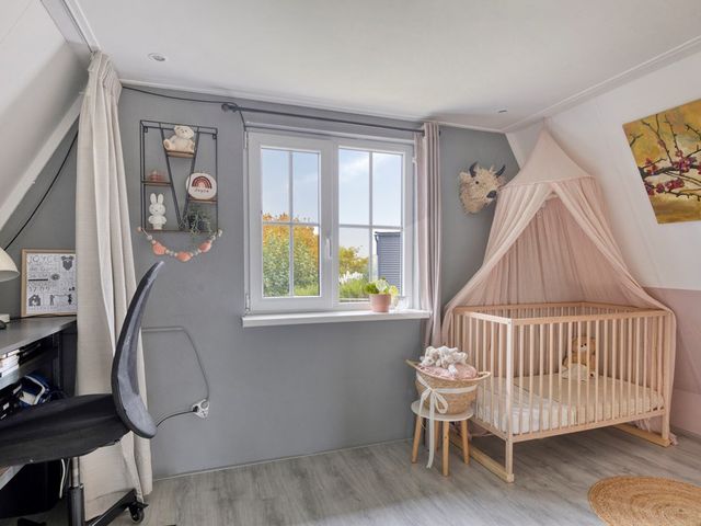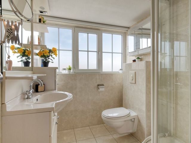 Boven vindt u twee ruime slaapkamers en een nette badkamer met tweede toilet, douchehoek, badkamermeubel en is voorzien van vloerverwarming.